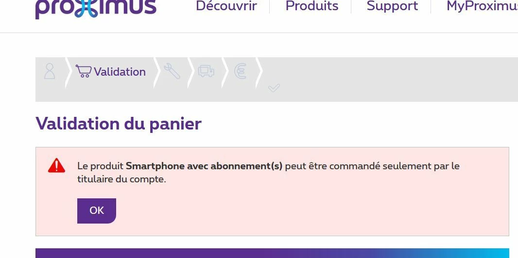 J'essaie de commander un nouvel abonnement avec smartphone via MyProximus.