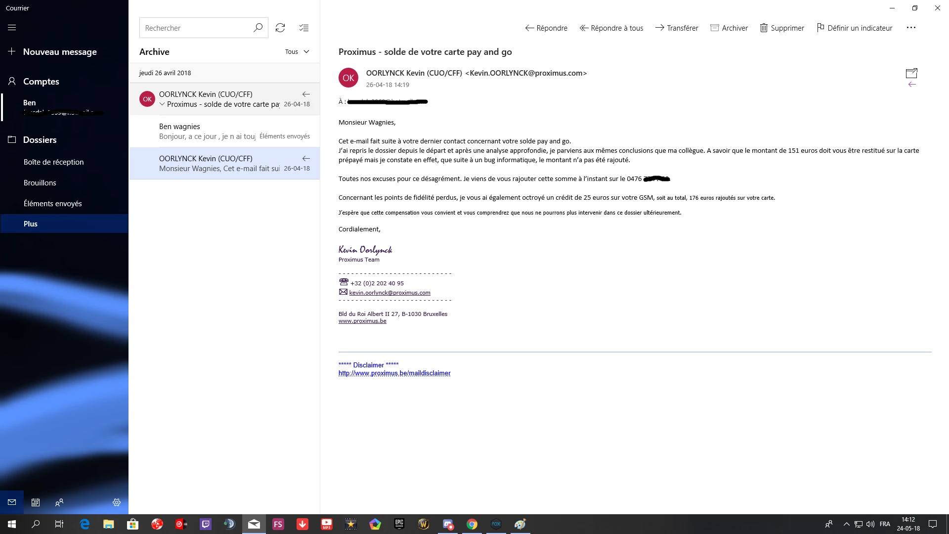 Cela fait plusieurs mois que Proximus me dois 176 euros de crédits sur mon GSM