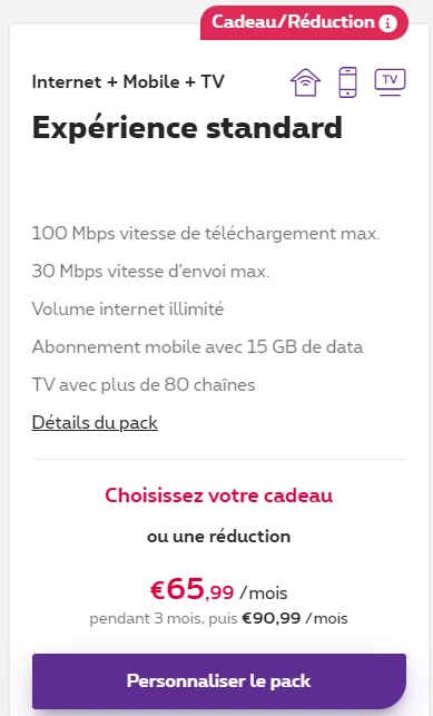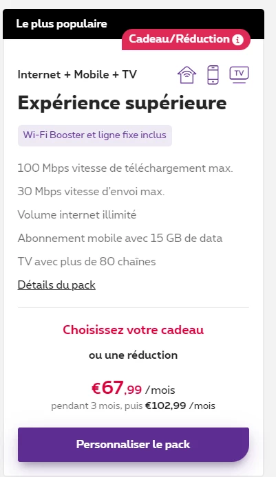 Je possède actuellement un pack Flex S (Internet, TV, Mobile) que je payais habituellement €102,99/mois. J’ai 3 questions svp;