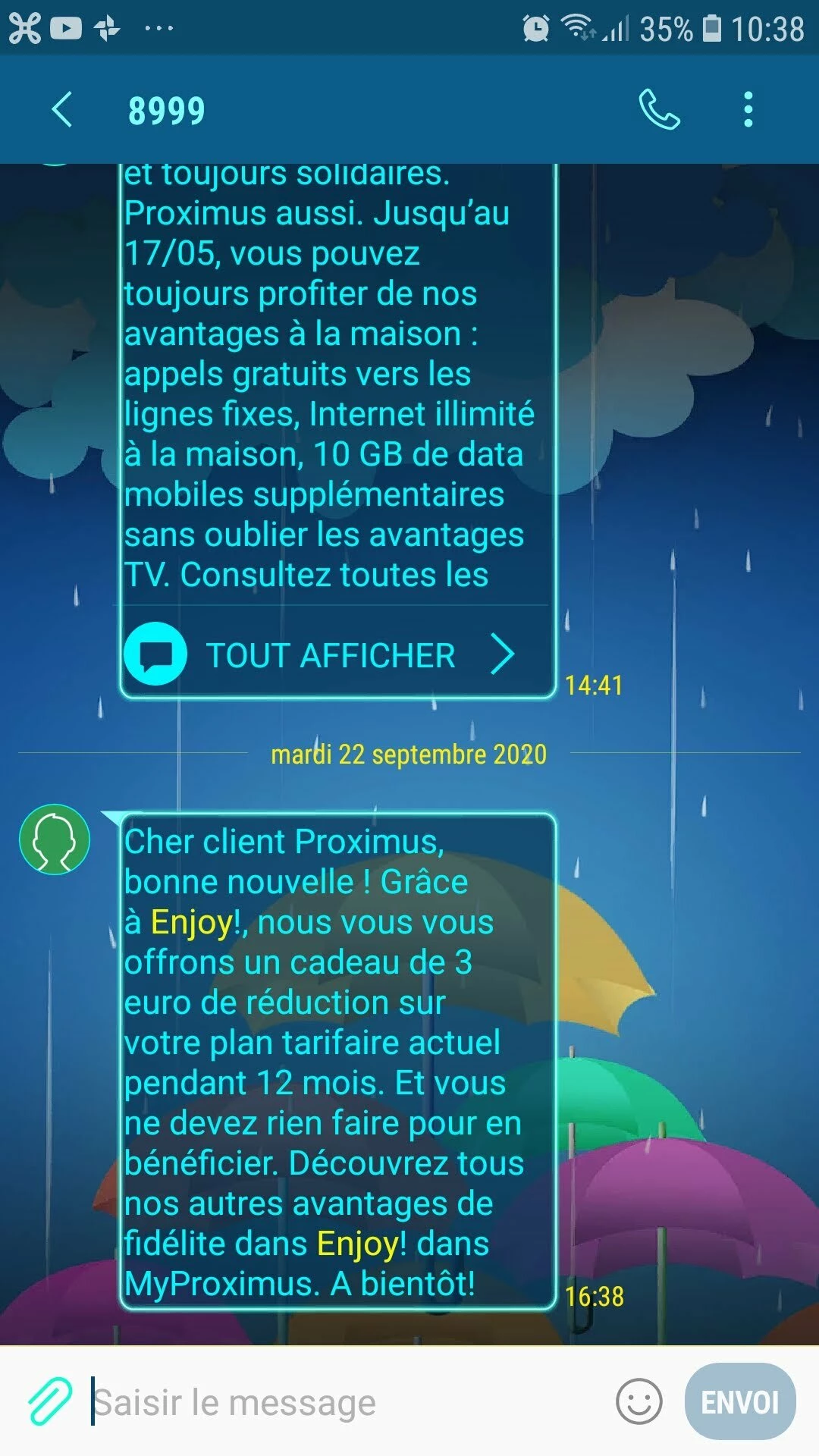 en date du 22 septembre , j’ai reçu un sms m’indiquant que durant 1 an, je recevrais une reduction de 3 euros sur mes factures.