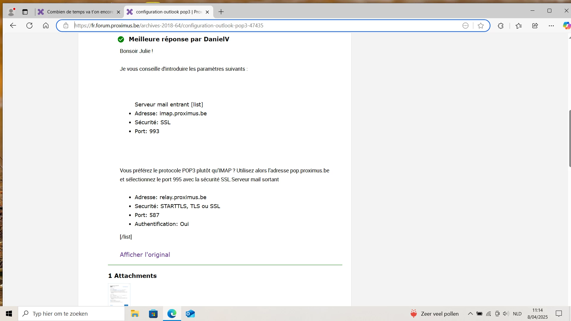 Depuis jeudi, plus d’accès au mail sortant, problème avec relay.proximus.be...Après un LONG combat avec l’IA et des interlocuteurs de première ligne du fin fond du trou du c… du monde, tous incompétents, j’ai reçu un appel téléphonique me disant “je vous envois la procédure” et je vous téléphone dans 30 minutes pour savoir si tout va bien…