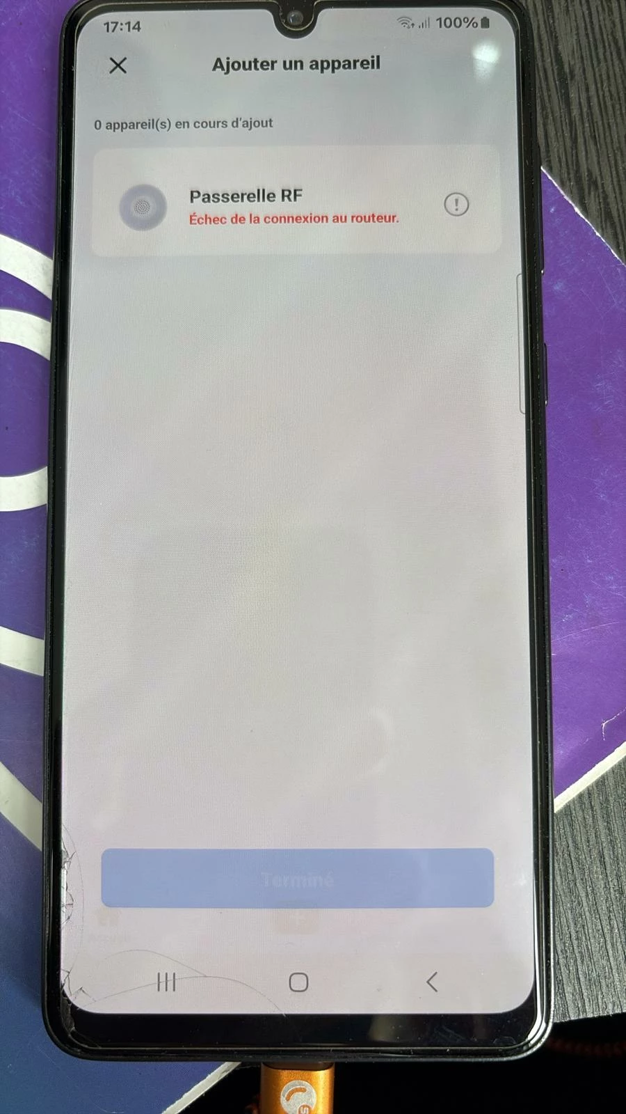 Je voudrais installer un article depuis l’appli Smart Life, l’appli reconnait l’appareil mais après environ 80 % de chargement, cela s’arrête et j ‘ai un message d’erreur.