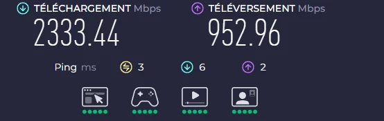 Par la suite, j’ai décidé de modifier mon abonnement et de passer à l’offre Ultra Fibre 8,5 Gbps. Cependant, après avoir refait plusieurs tests, j’obtiens exactement la même vitesse de connexion qu’auparavant.