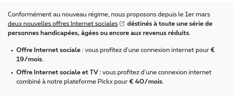 On aimerait tout simplement faire la demande du tarif social pour notre pack qui contient TV, internet et le fixe.