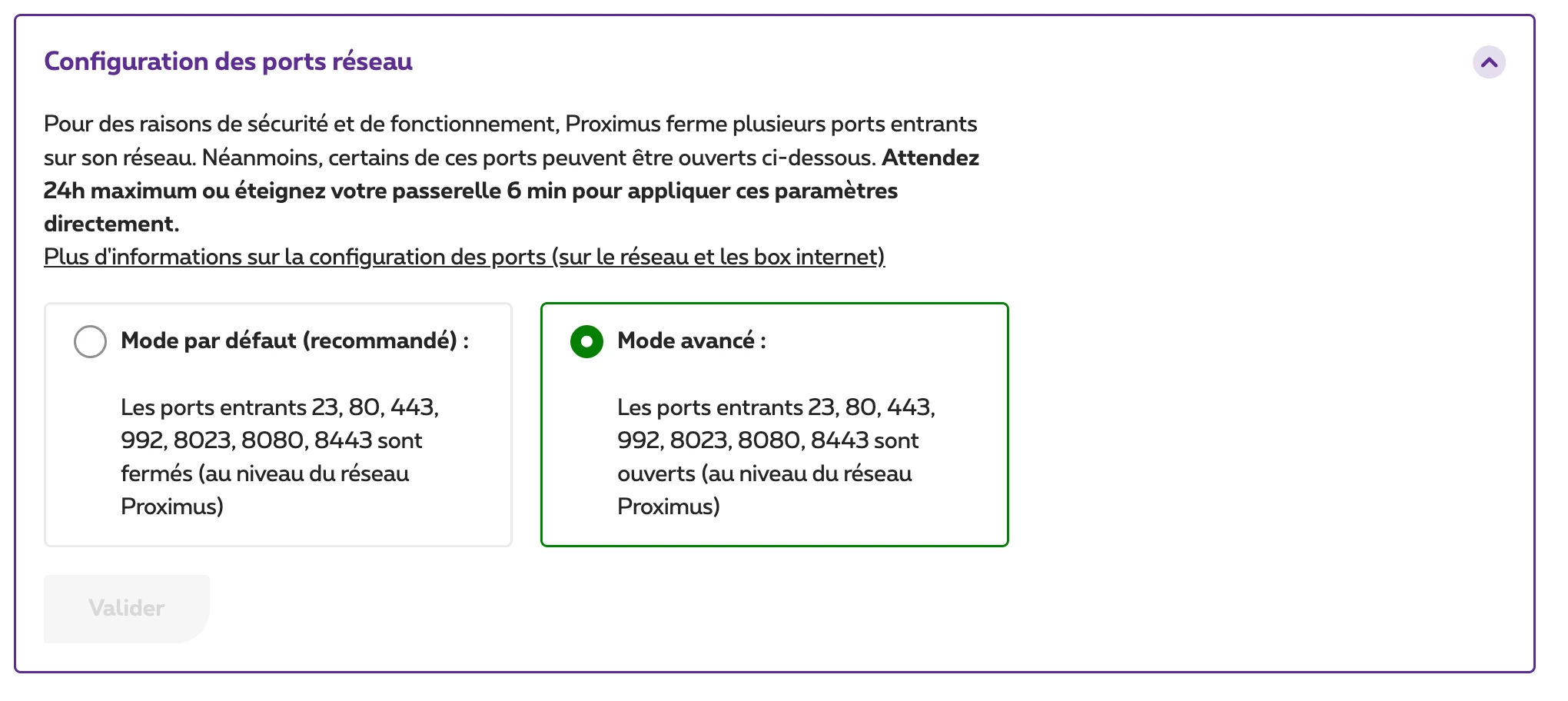 Le mode avancé est bien activé depuis plusieurs jours. J’ai plusieurs fois redémarré mon modem entre temps et j’ai attendu plus de 10 minutes entre les redémarrages. Je suis même repassé en mode par défaut puis de nouveau en mode avancé, rien n’y fait. J’ai aussi effectué un Factory Reset et toujours Rien.