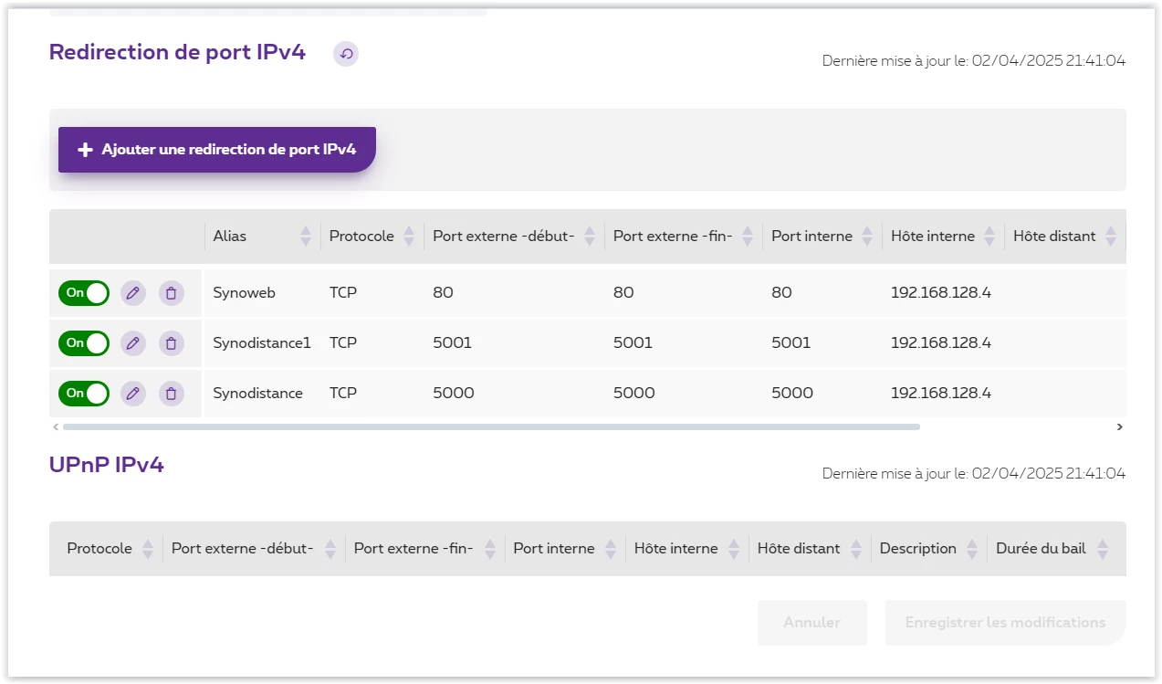 Impossible d'ouvrir les ports 80 et 443 sur internet Box
