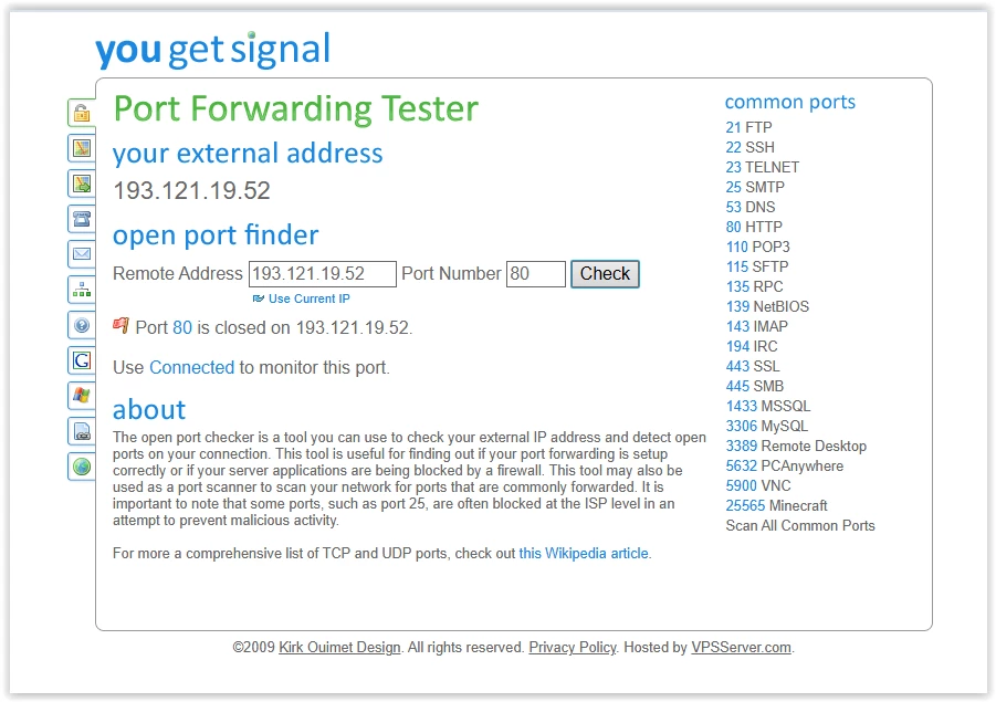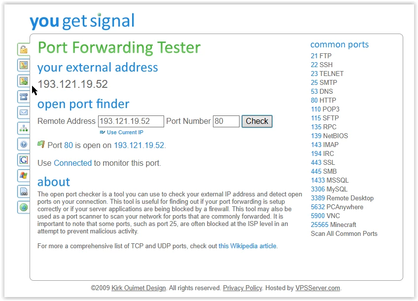 J’ai testé avec : https://www.yougetsignal.com/tools/open-ports/