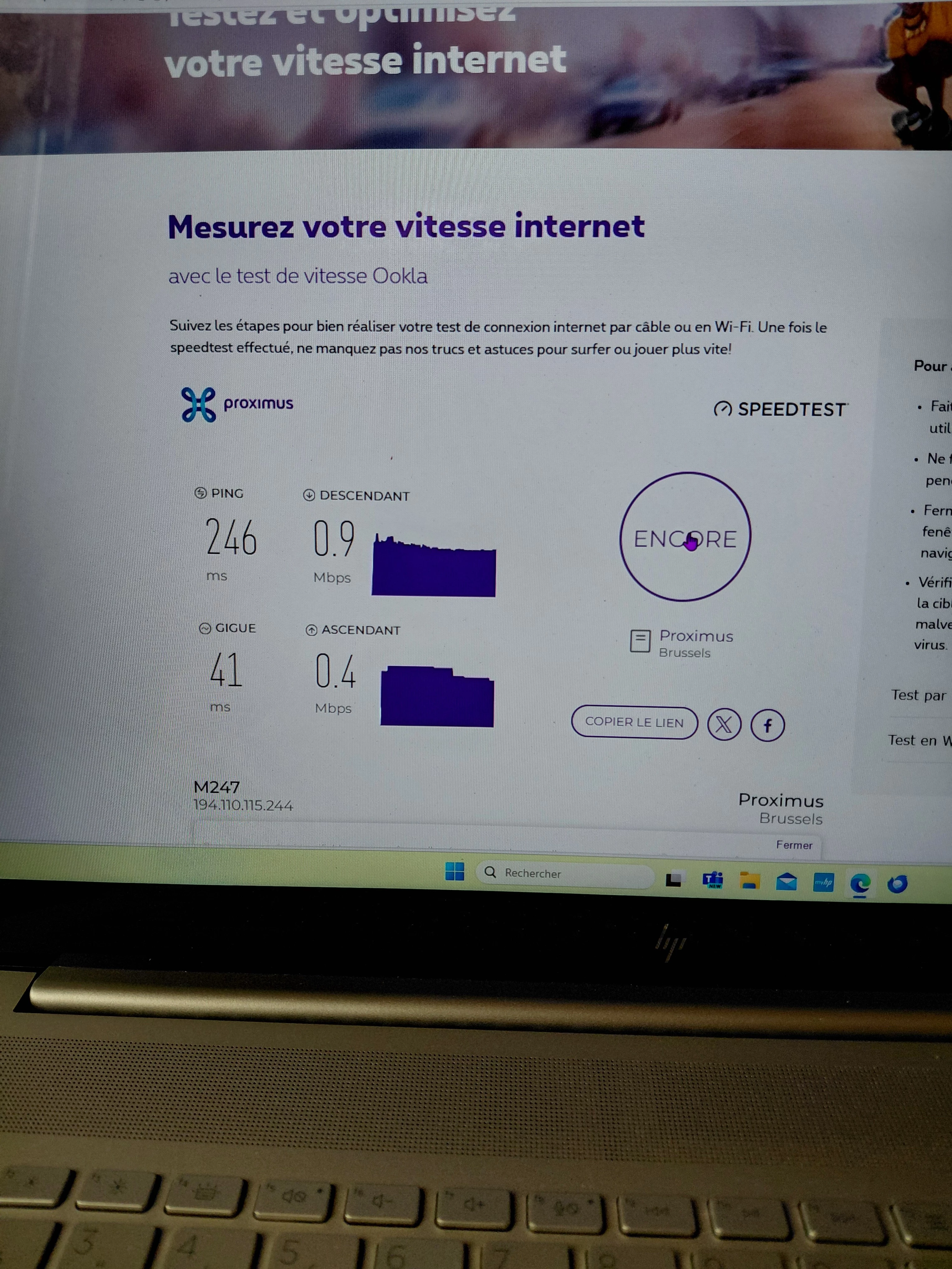 voila ma vitesse internet et vraiment tres basse et instable