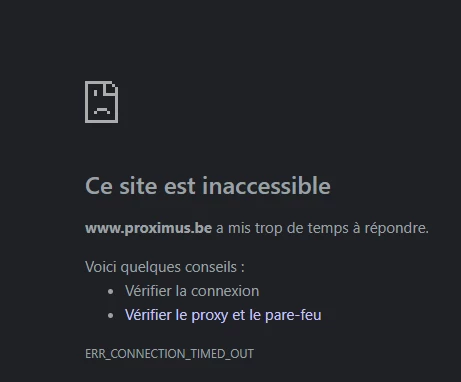 Tous mes sites sont lents, j’arrive même plus à accéder sur le site de Proximus et à Proximus TV que sa sois sur l’internet box ou mon UCG.