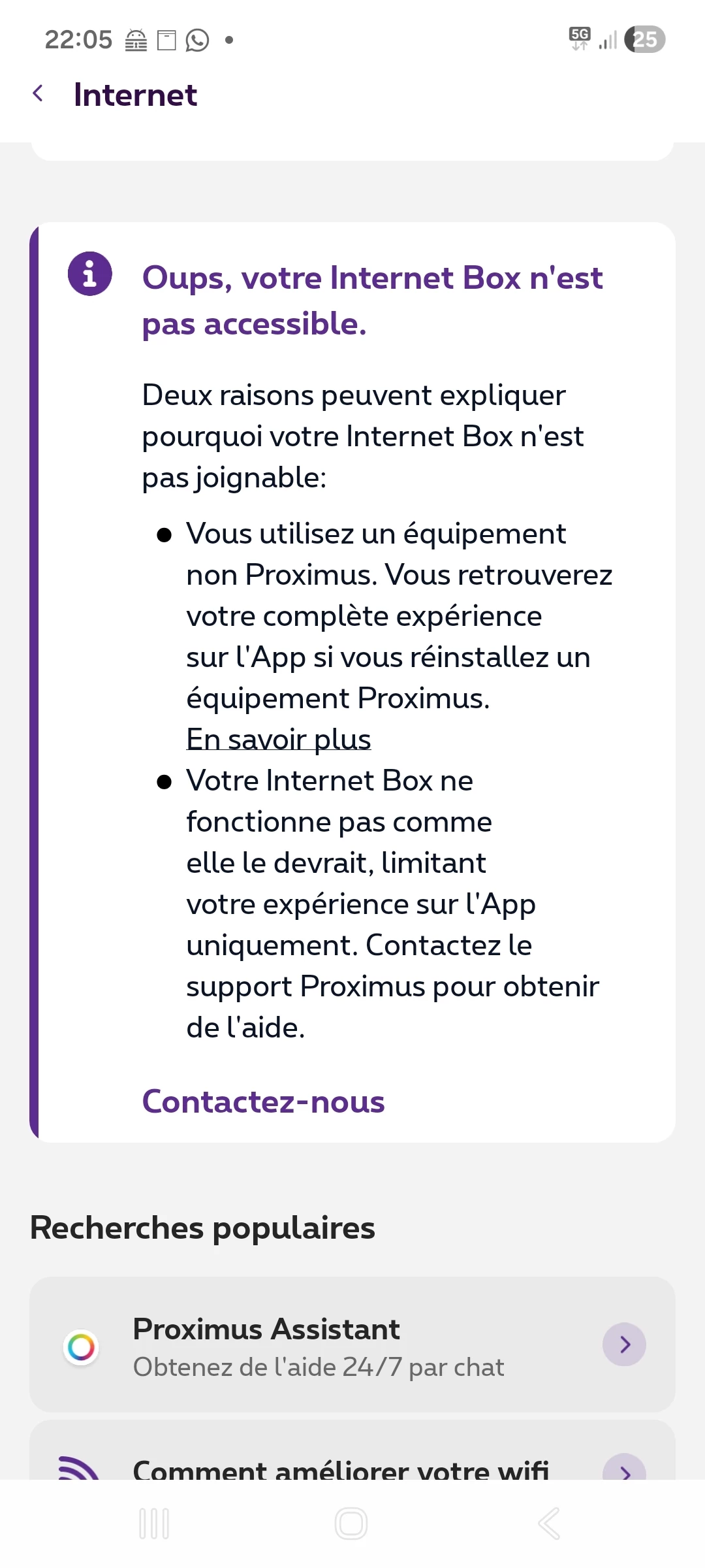Pourrez-vous s’il vous plaît régler le problème? Je présume qu’il faut lier cette internet box à mon compte MyProximus puisque cela ne s’est pas fait automatiquement...tout du moins pas de façon permanente.