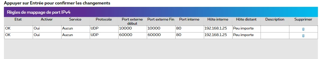 bonjour j’ai ouvert les port de la box sur leur site et sur ma box meme et quand je verifier il sont fermer