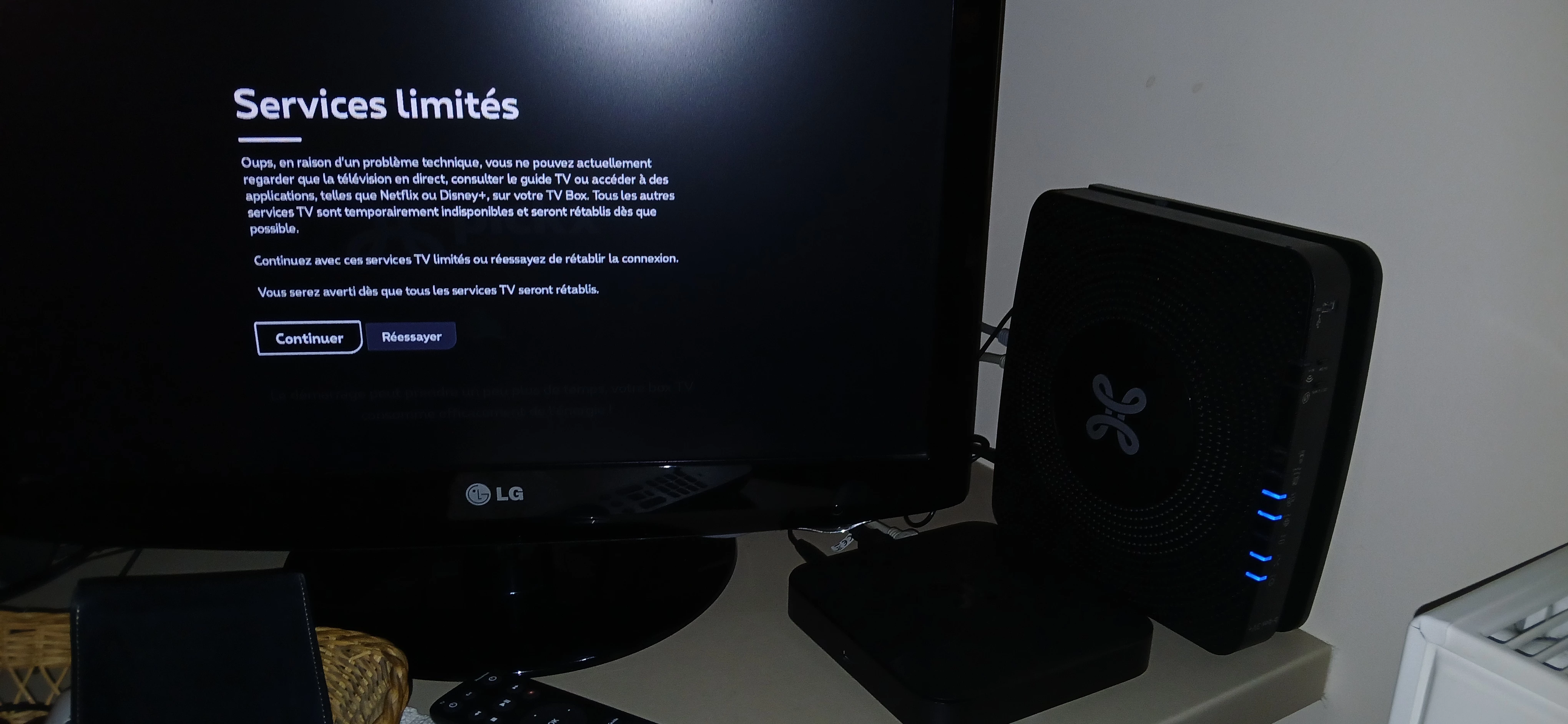 régulièrement tous les 2 ou 3 jours je n’ai plus d’internet donc plus de programme tv, plus de connection wifi. l’ensemble des cablâges est correcte car cela a bien fonctionné depuis longtemps et il n’y a eu aucune modification..