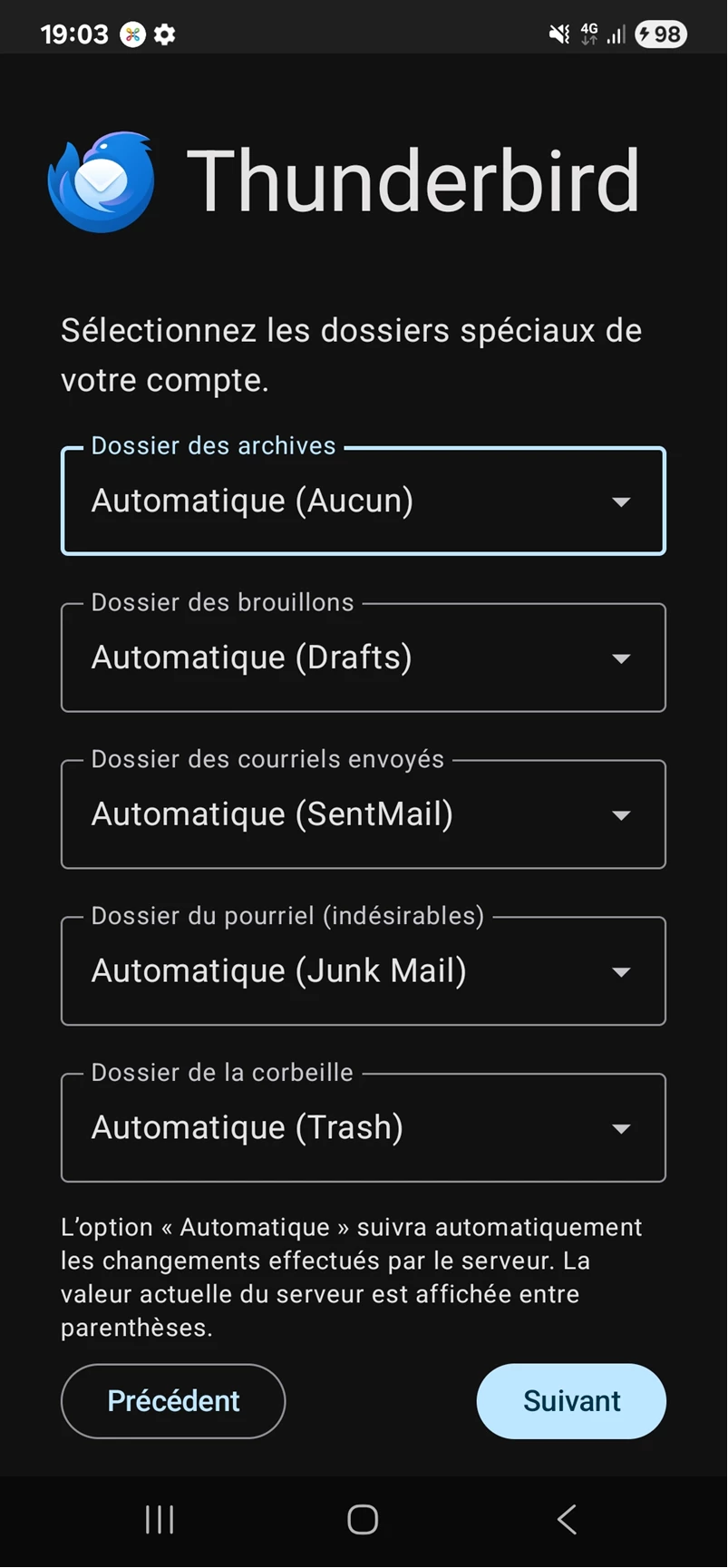 Problème de synchronisation également avec la fonction “Envoyer”. Quand un email est envoyé avec Thunderbird, je le retrouve dans le dossier “Envoyés” de ce courrielleur. Par contre, l’email envoyé n’est visible dans le dossier “Envoyés” du Webmail de Proximus.
