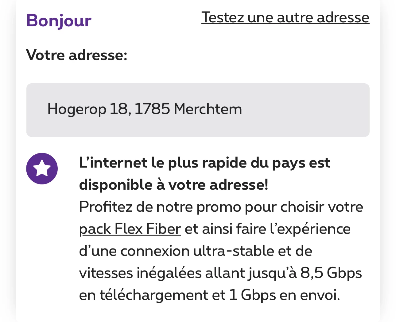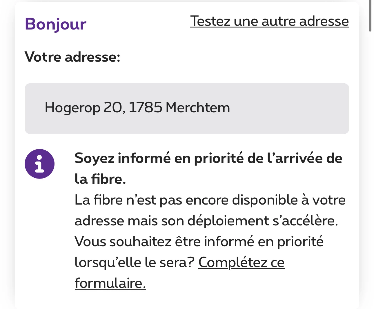 toutes les maisons et appartements de mon nouveau lotissement sont disponibles pour la fibre j ai fait le test sur Proximus fiber a l exception de ma maison