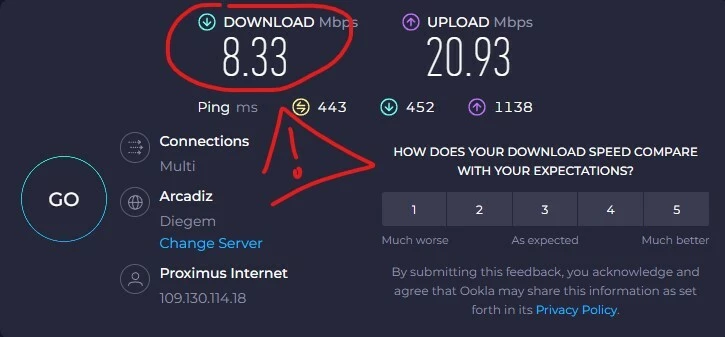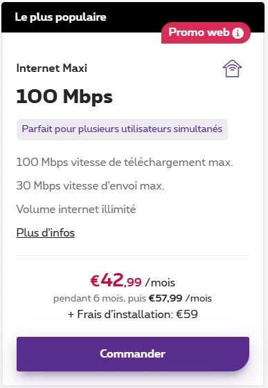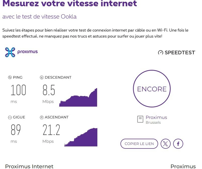 Nous payons 60 € par mois pour un débit de téléchargement de 100Mbp/s et nous somme à pas plus de 10Mbp/s.