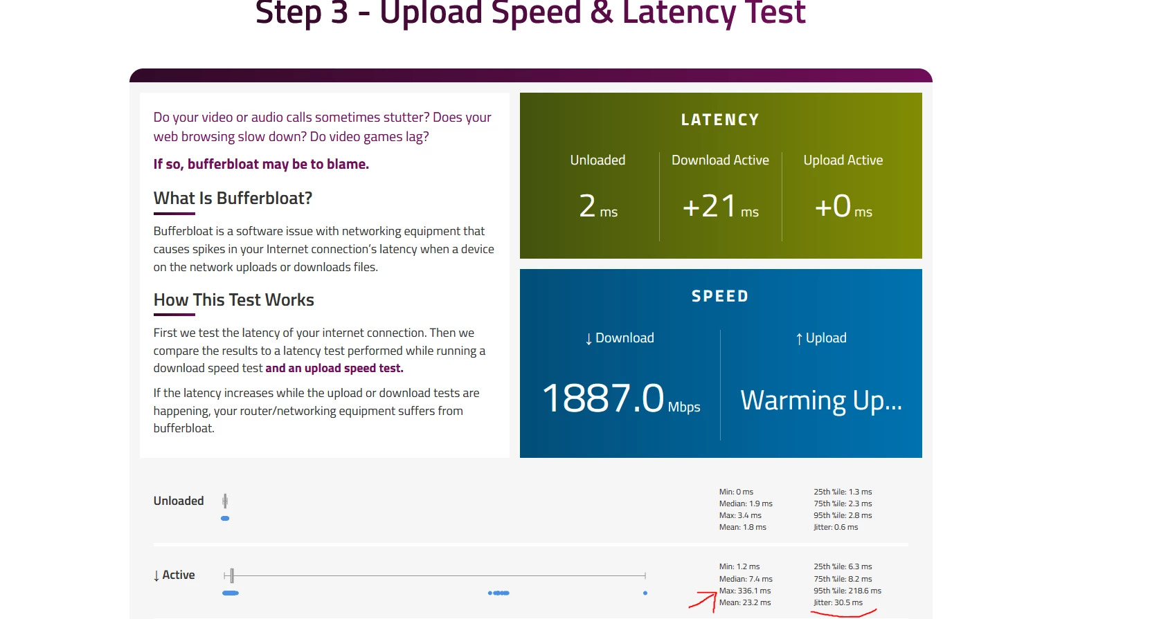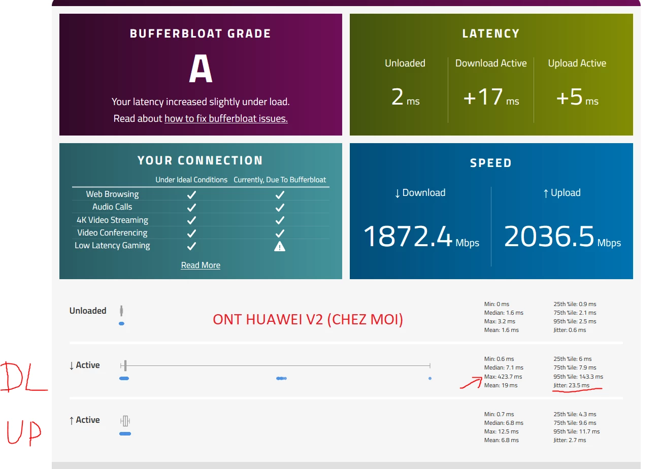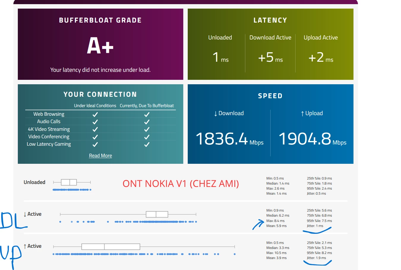 via un port ethernet 1gb : https://www.waveform.com/tools/bufferbloat?test-id=33471d30-23d2-4657-9cb9-a480a88ab4d6