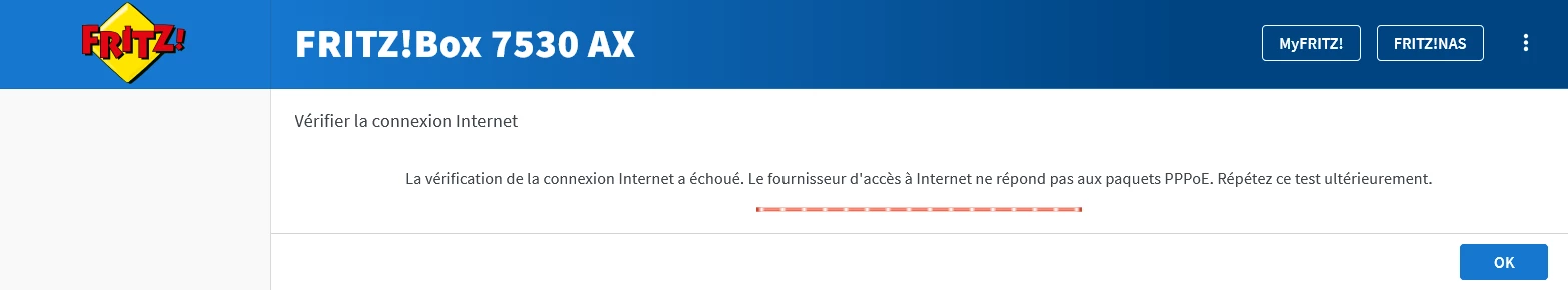 Je cherche à remplacer l’Internet Box par ma Fritz!Box. Le DSL se connecte bien, mais rien pour internet. J’ai passé plusieurs heures au téléphone avec Proximus et les collaborateurs m’ont proposé plusieurs mots de passe pour ma configuration PPPoE, mais rien n’a fonctionné. J’ai toujours le message suivant :