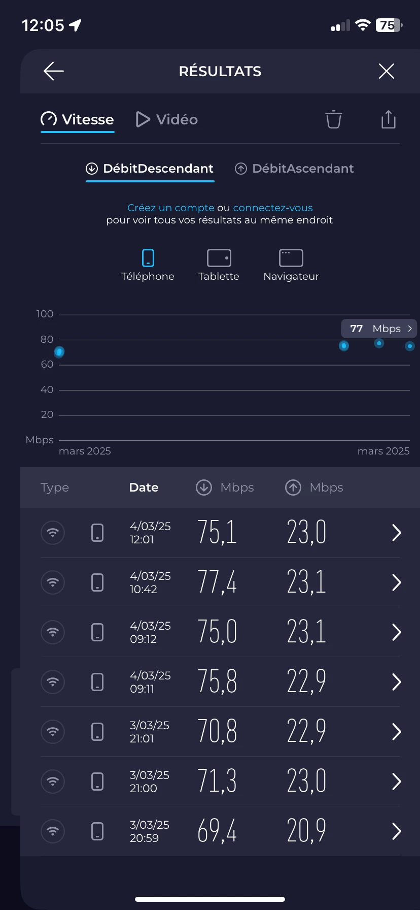 il semblerait d’après le site Proximus, que je pourrais monter au max jusqu’à 75;