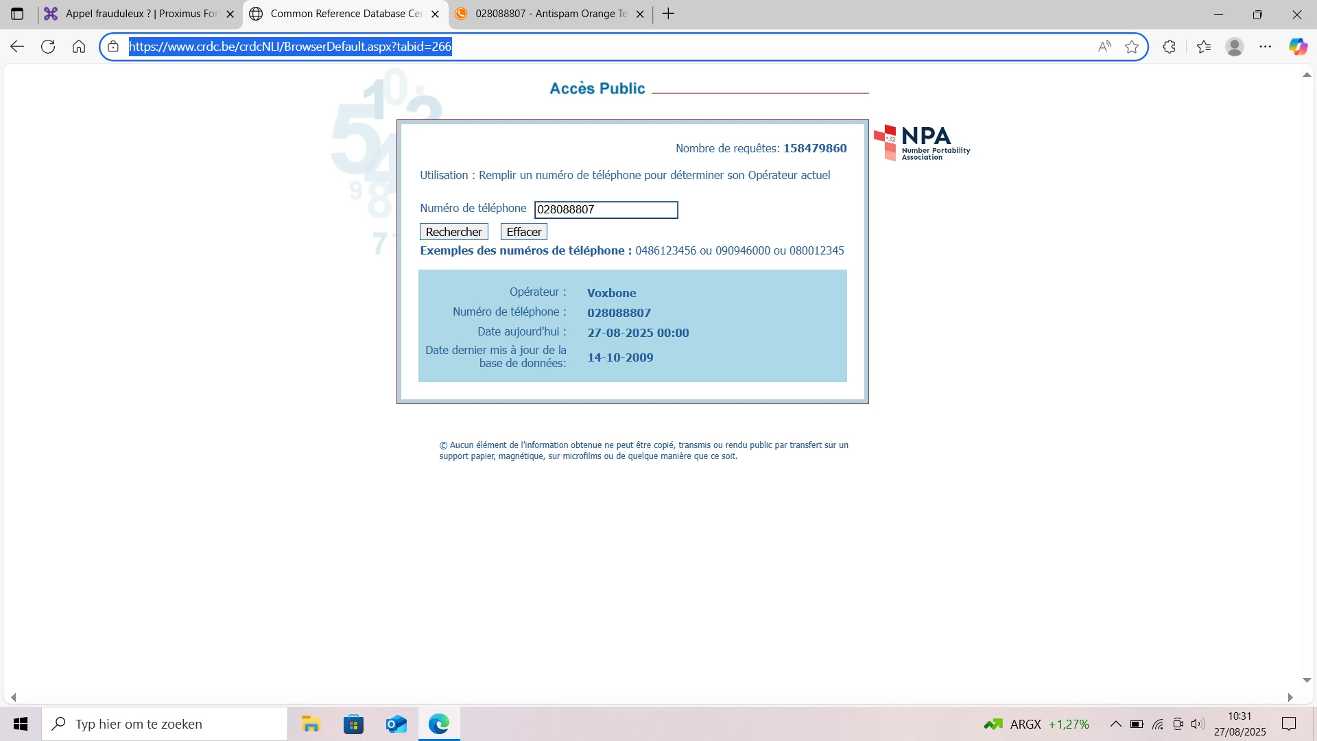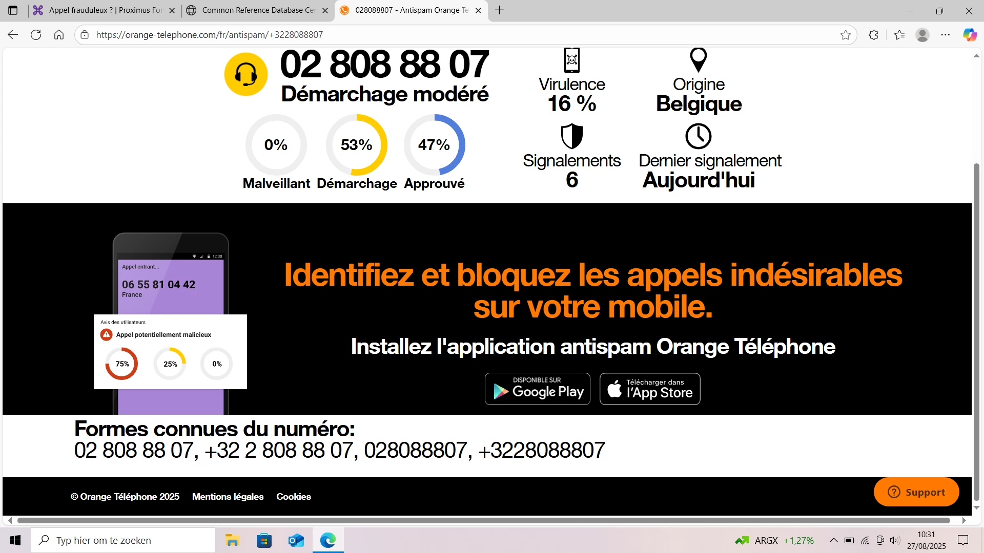 J'ai reçu un appel ce 26 août 2025 d'un numéro fixe : 028088807