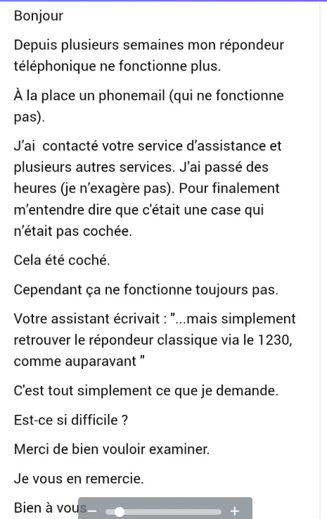 Même si je comprends un peu le néerlandais, je suis incapable de faire les modifications de mes options téléphoniques autrement qu’en français.