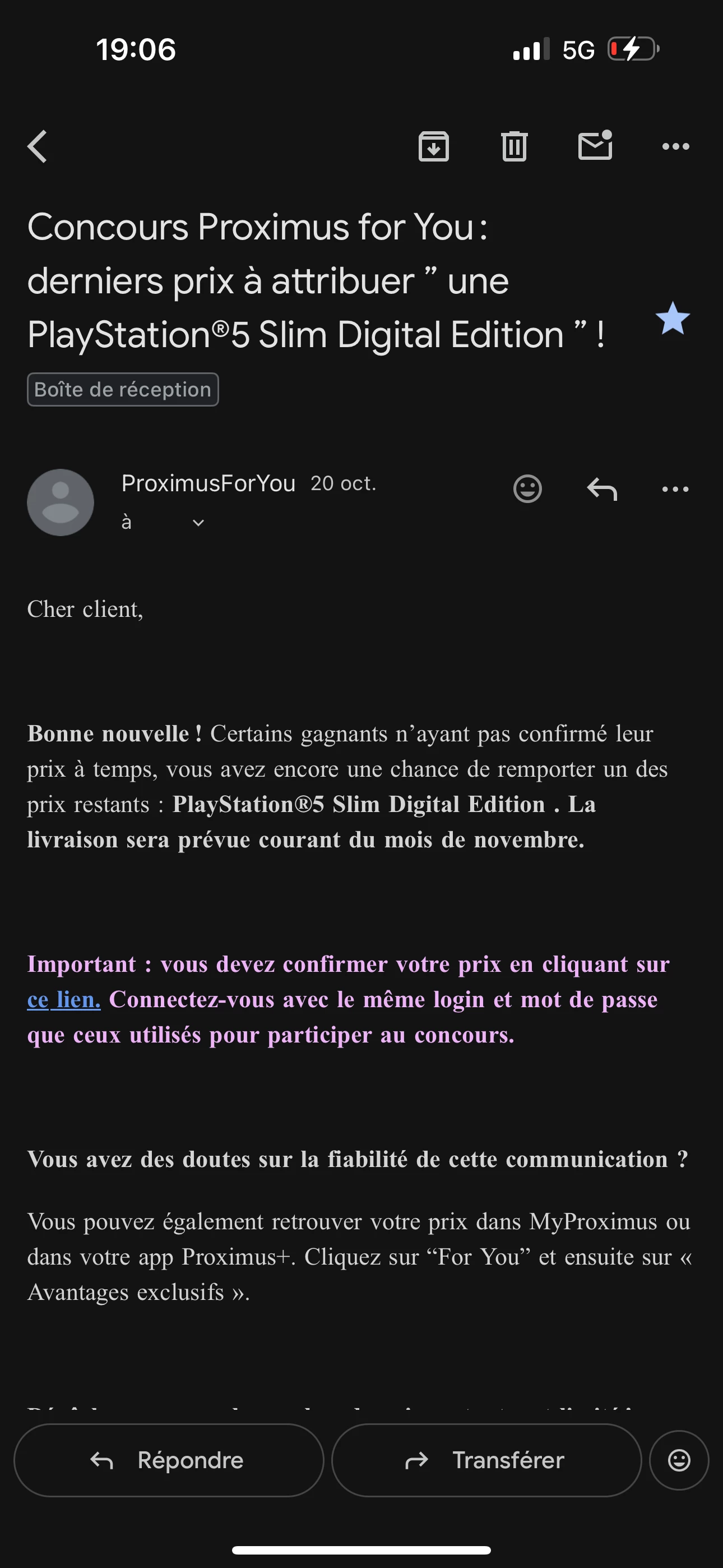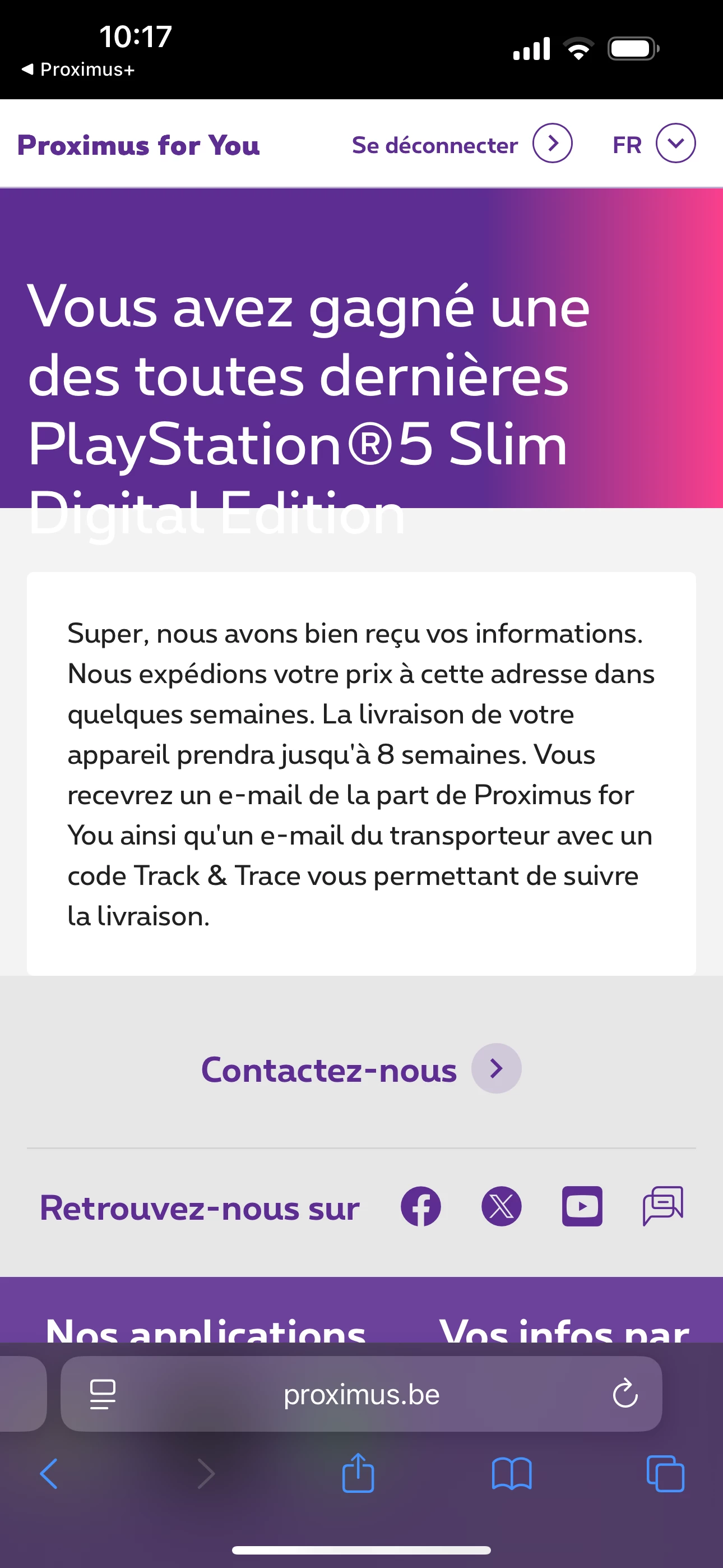j’ai jouer dans plusieurs concours et la je pense avoir gagné je suis même sur, mais ceux de chez Proximus ne savent pas vraiment m’aider..