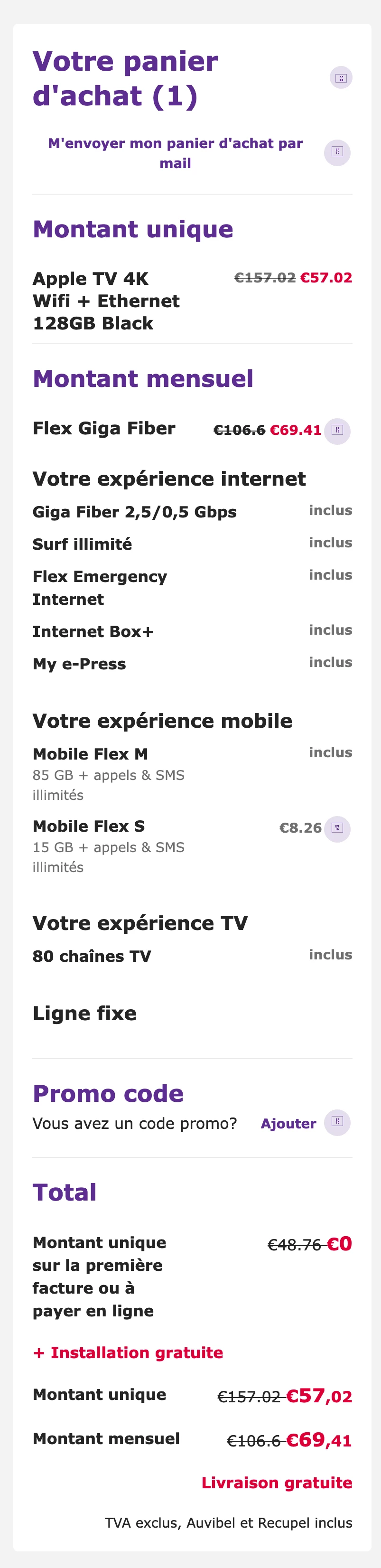 j'ai essayé à plusieurs reprises d'effectuer une commande pour un Flex pack Fiber (en tant que nouveau client), et ce avant la fin de votre promotion Web (3/11/2024).