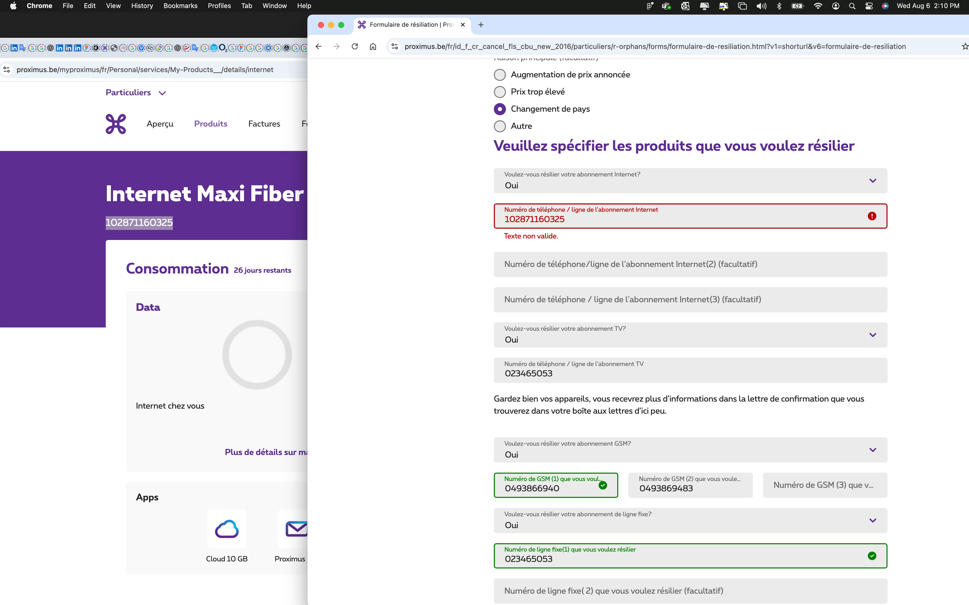 Je souhaite résilier mon abonnement internet mais le numero indique sur My Proximus ne fonctionne pas, le service client renvoi sur ce meme formulaire, c’est une boucle sans fin. Si quelqu’un a la solution, je suis preneur !