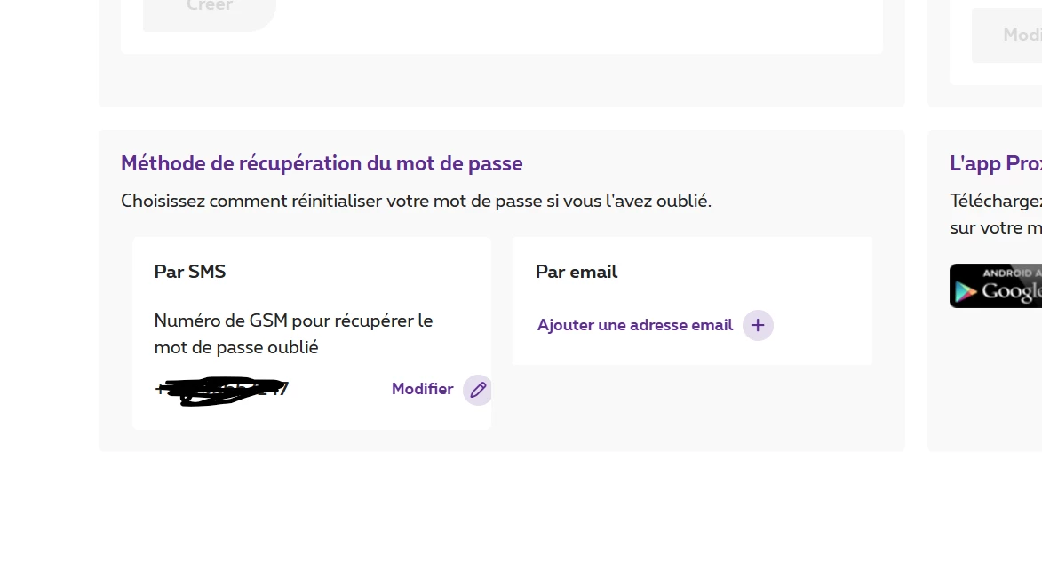 je me connecte à my Proximus et la je sais juste changer le mot de passe de my Proximus, je n’ai aucun endroit pour définir un mode de récupération. Je tourne en rond.