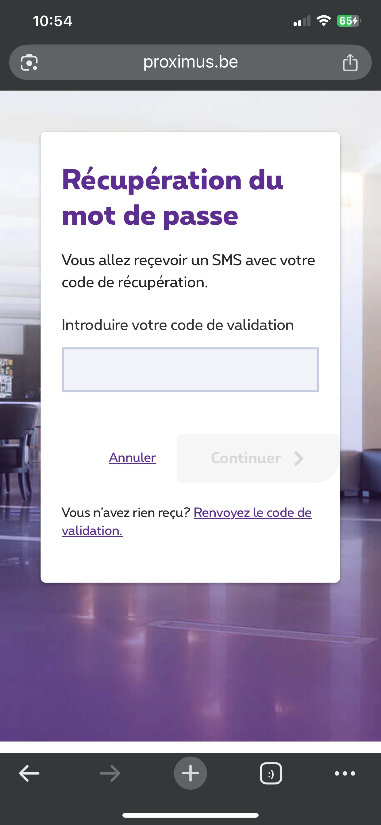 Pour récupérer votre mot de passe, veuillez définir votre mode de récupération favori dans MyProximus.