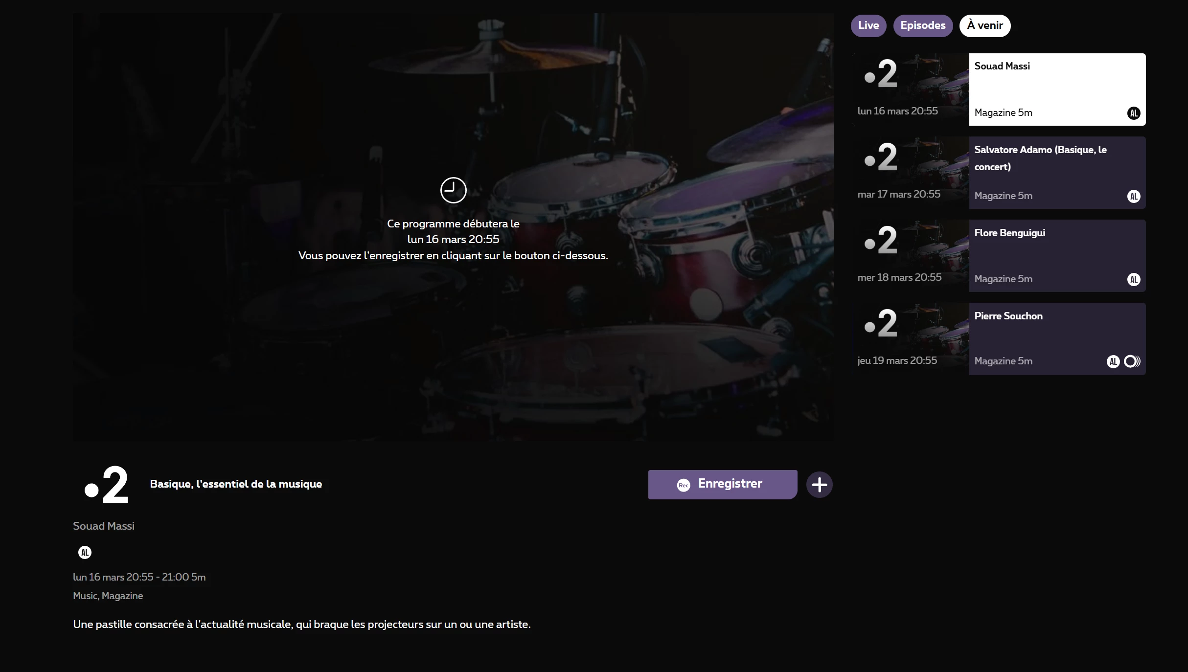 - la première émission du 24 juin (18h40) n’a jamais été enregistrée par le décodeur, malgré “l’enregistrement en série” programmé. Ce problème est assez récurrent où “l’enregistrement en série” parfois décide de sauter et de ne pas enregistrer certains épisodes (j’ai encore eu le cas il y a une semaine ou deux, où les émissions du jeudi et du vendredi ont été “sautées” alors qu’elles étaient bien diffusées, mais j’ai pu heureusement compenser par leur replay sur Tipik qui diffuse les mêmes émissions mais avec un horaire décalé - France 2 ne proposant pas de replay).