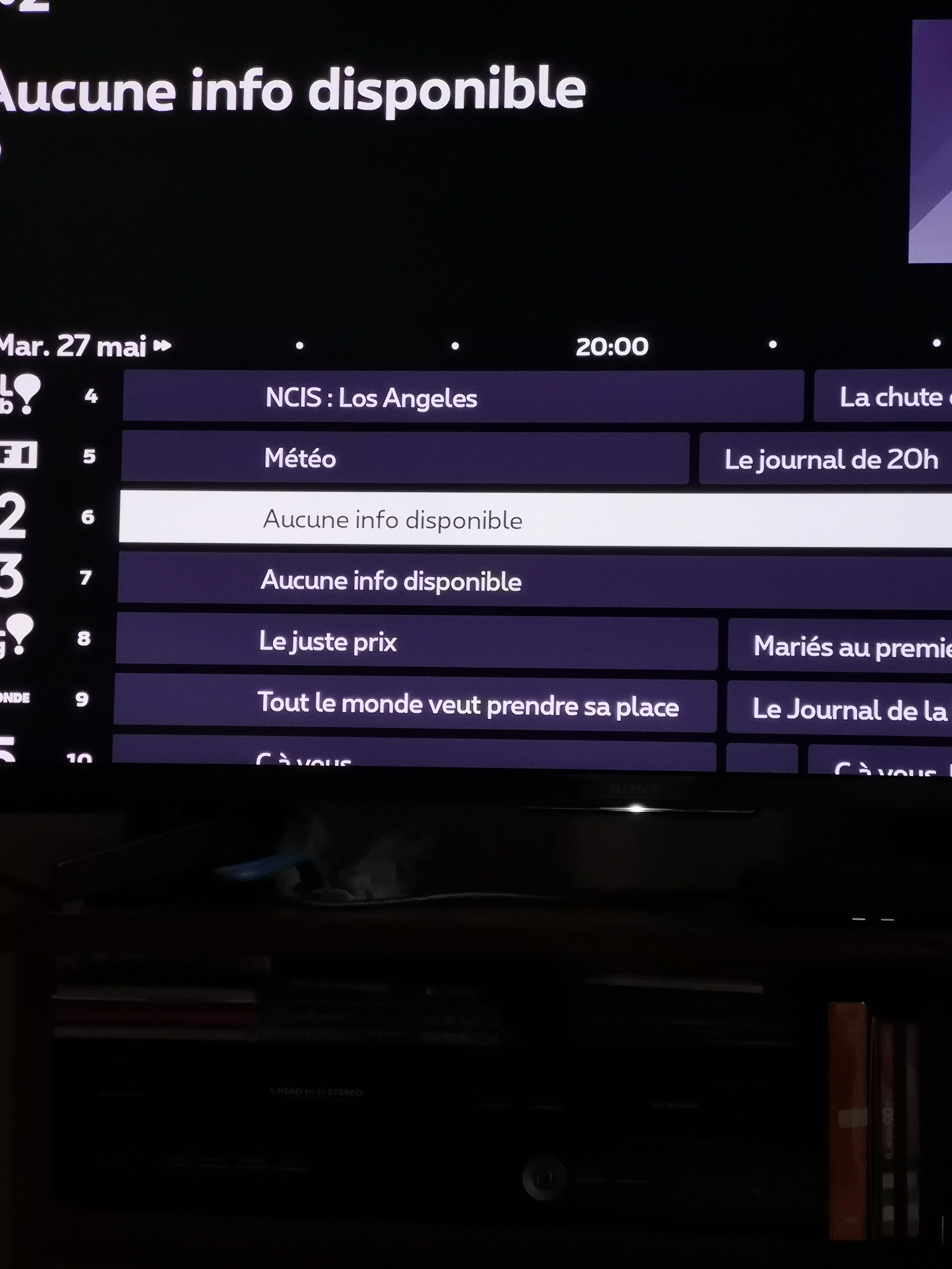 Dans le guide des programmes je suis pollué en permanence par “pas d’information disponible” ou “en cours de chargement” à la place des programmes, résultat pour enregistrer quelque chose c’est nul et non avenu et ça commence vraiment à m’énerver ! Déjà que les résumés dans le guide sont souvent complètement à la ramasse en plus quand il n’y a que le néant c’est la totale.