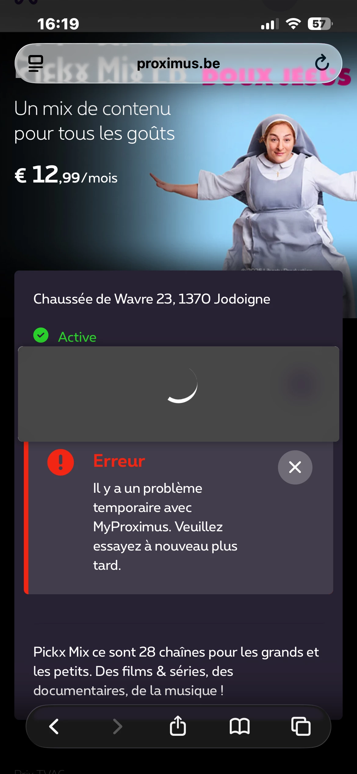 j’a actuellement un abonnement Pickx mix à 12,99€/ mois et impossible de le supprimer quand je me connecte sur le site my Proximus. Il y a toujours un message d’erreur.