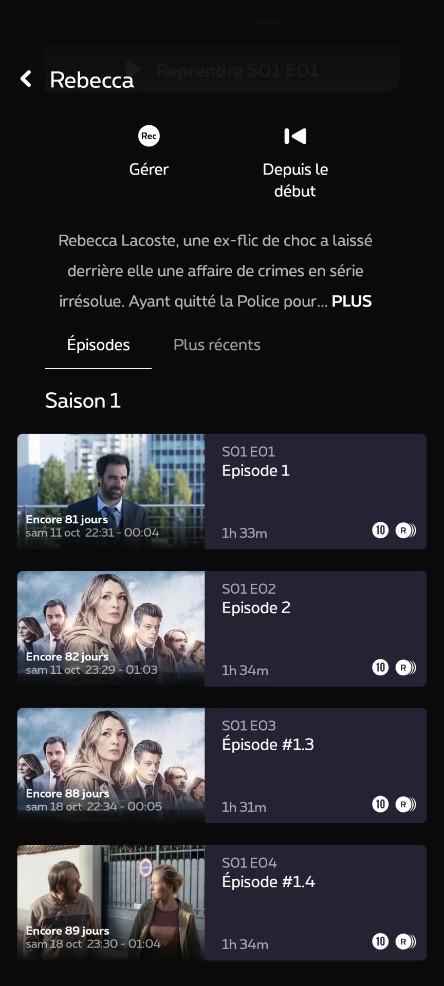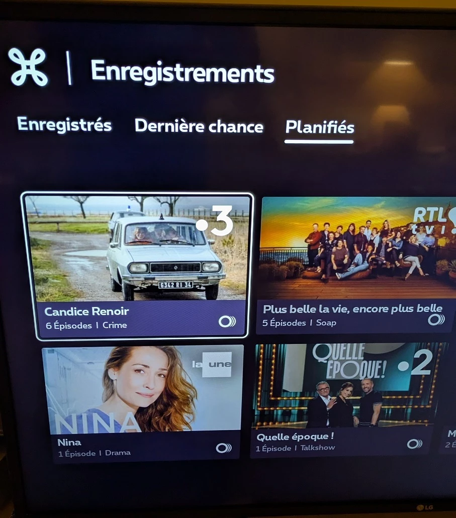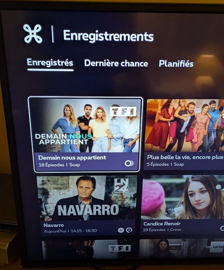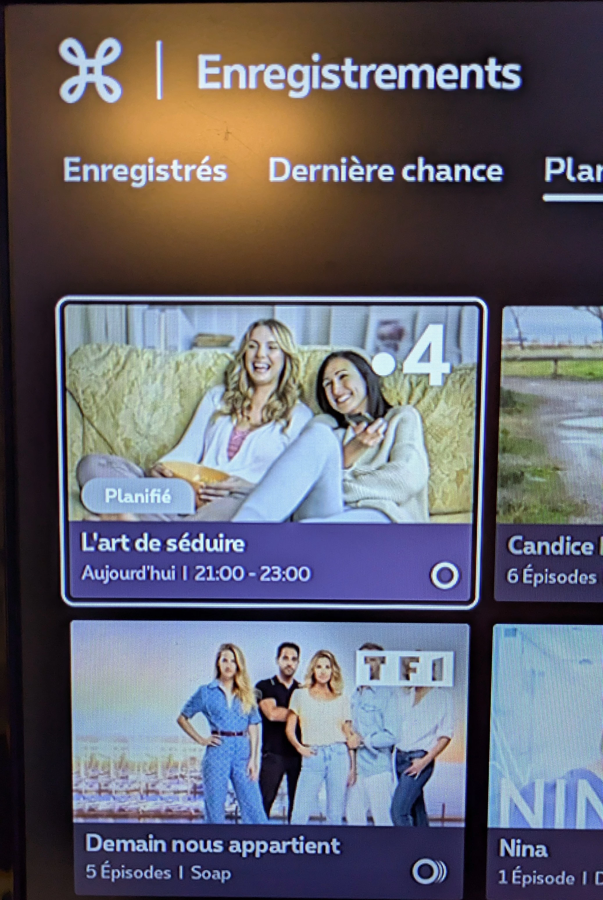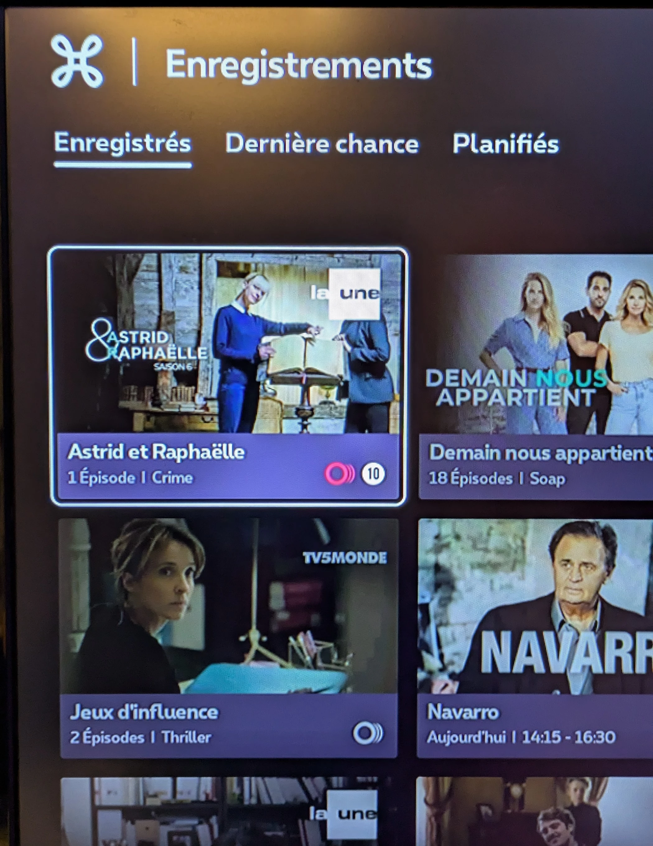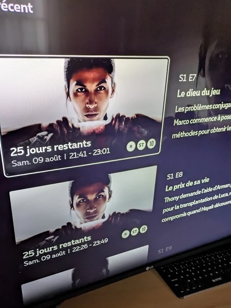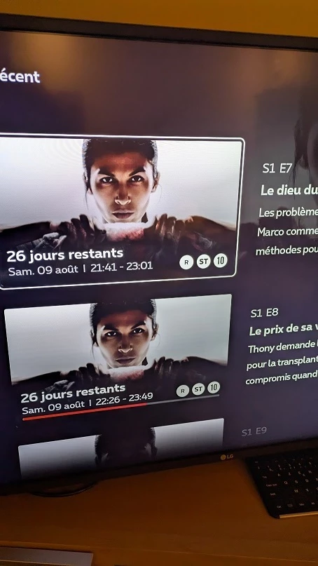 Même en éteignant et rallumant le deuxième décodeur, rien ne change et celui-ci n’indique même pas qu’il y a enregistrement - dans la liste des épisodes des enregistrements en série, il arrive régulièrement que les épisodes sont mélangés. ex récent Pus belle la Vie dans l’ordre épisode 393-394-395-396-392. Le plus ancien se retrouve en fin de liste au lieu d’être en premier. Idem sur la série Tracker où deux épisodes les plus anciens se retrouvaient mélangés au milieu de la liste