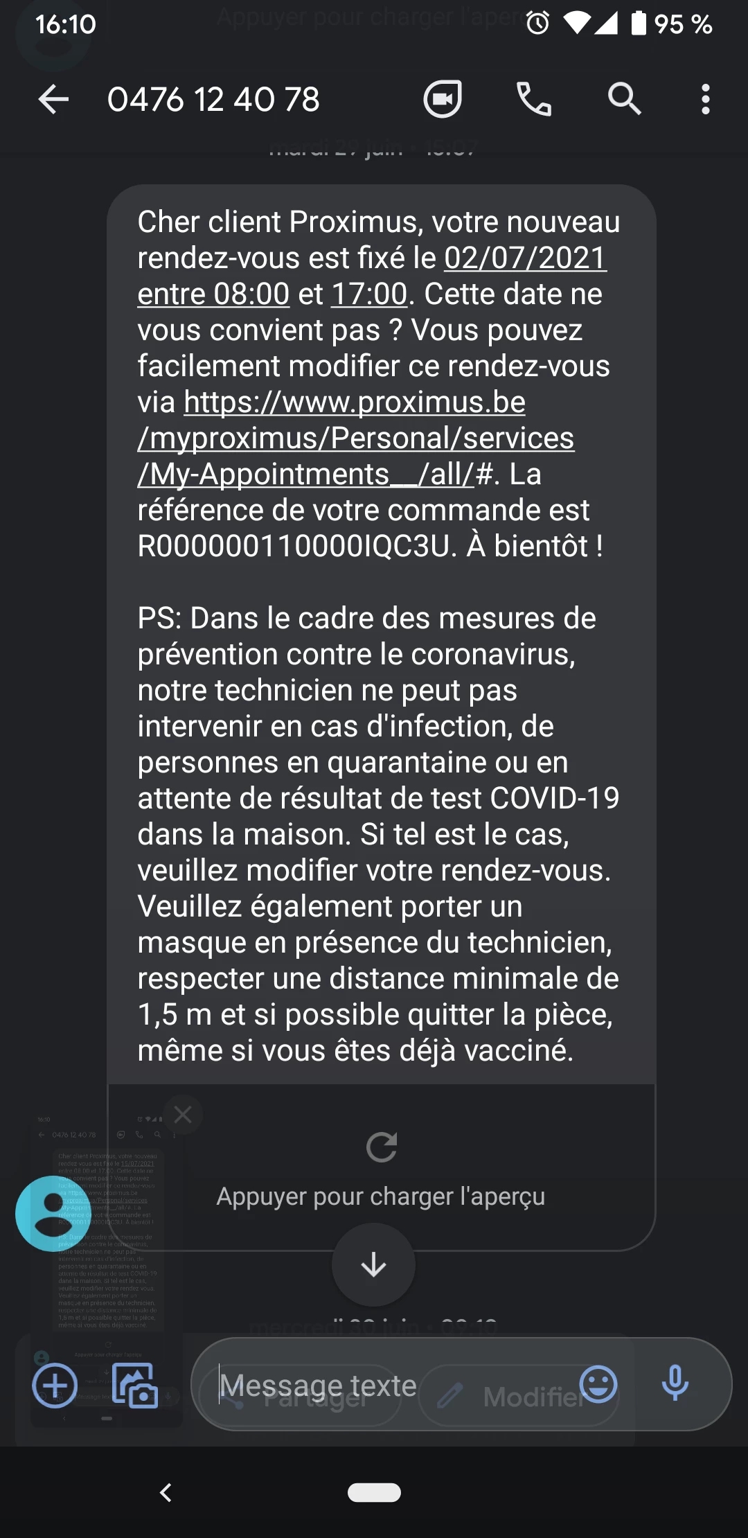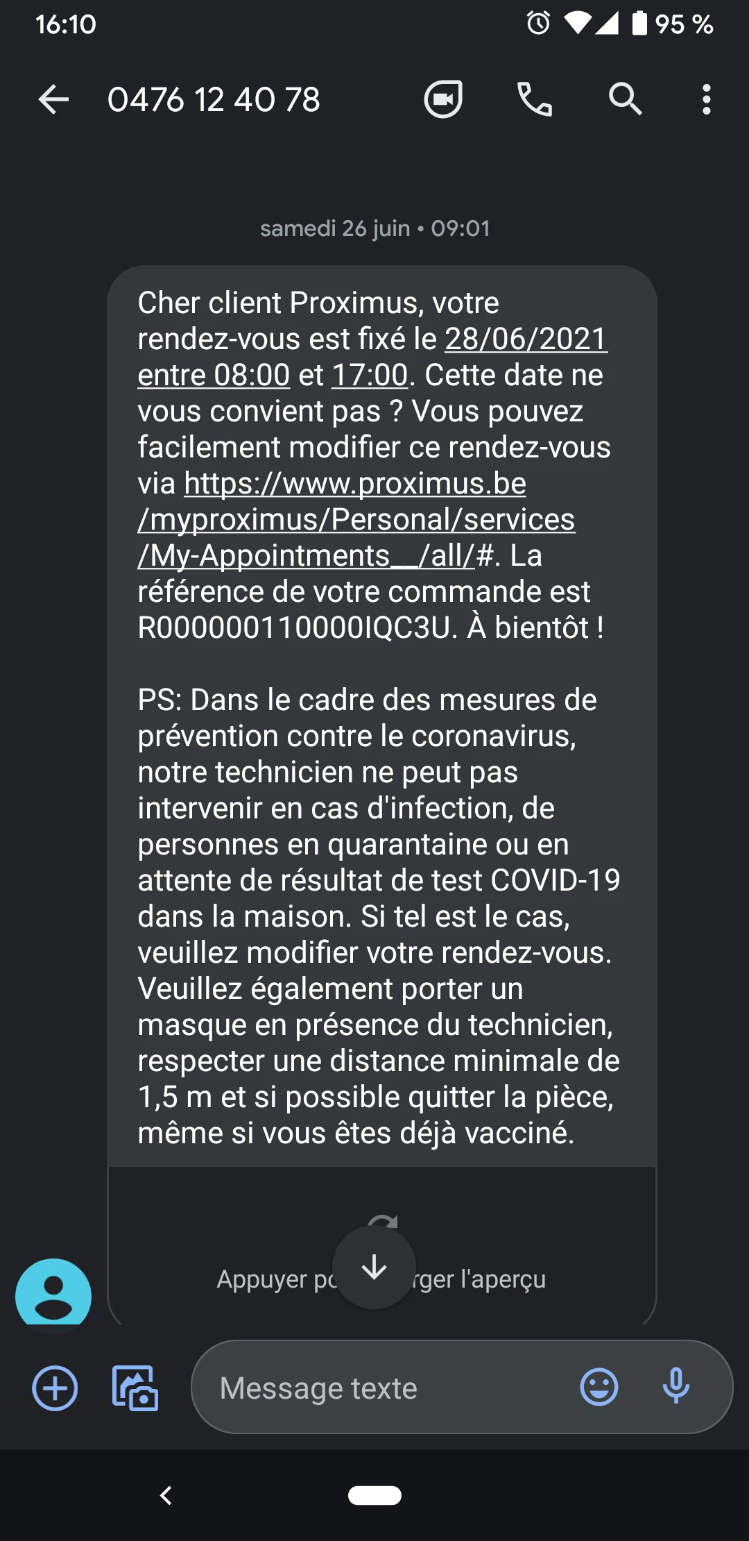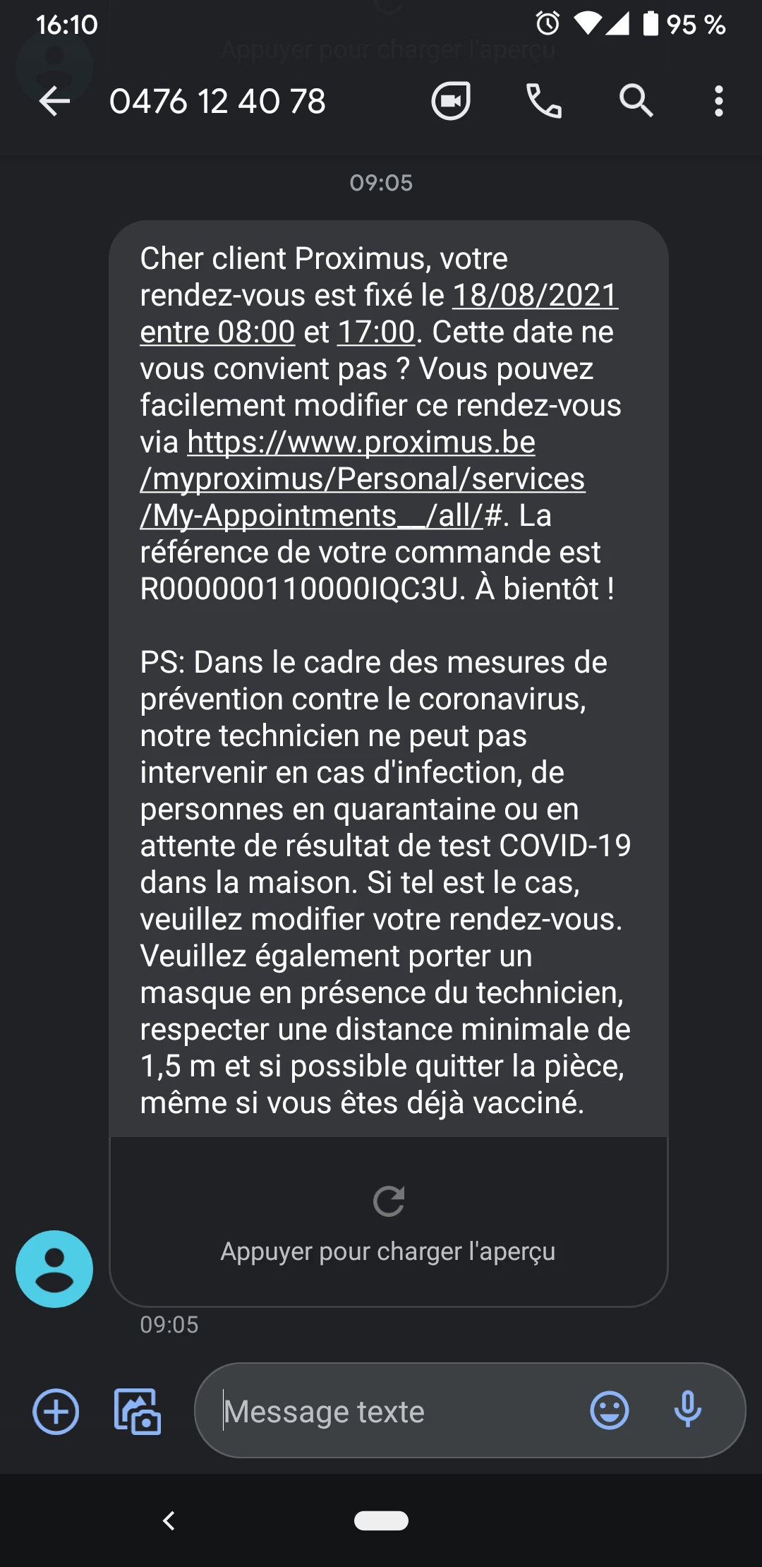 Après avoir contacté le chat Proximus, on me donne finalement un rendez vous le 02 Juillet.