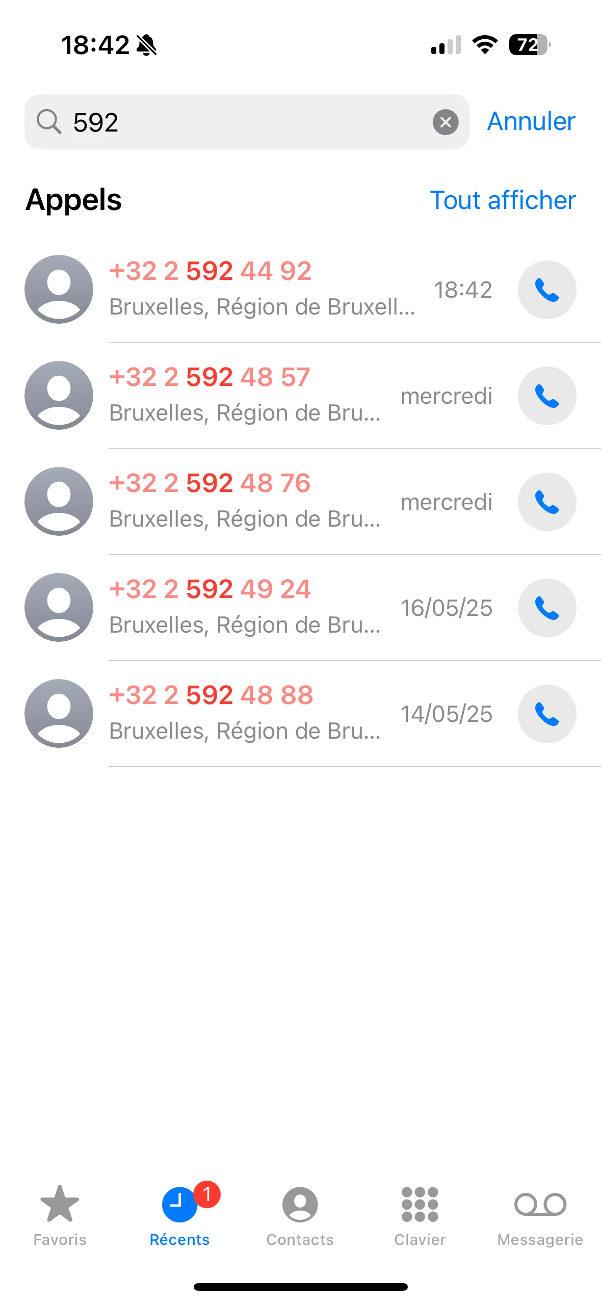 Depuis un certain temps, je suis quotidiennement contacté par des numéros 02 592 XX XX se présentant comme un service Proximus.