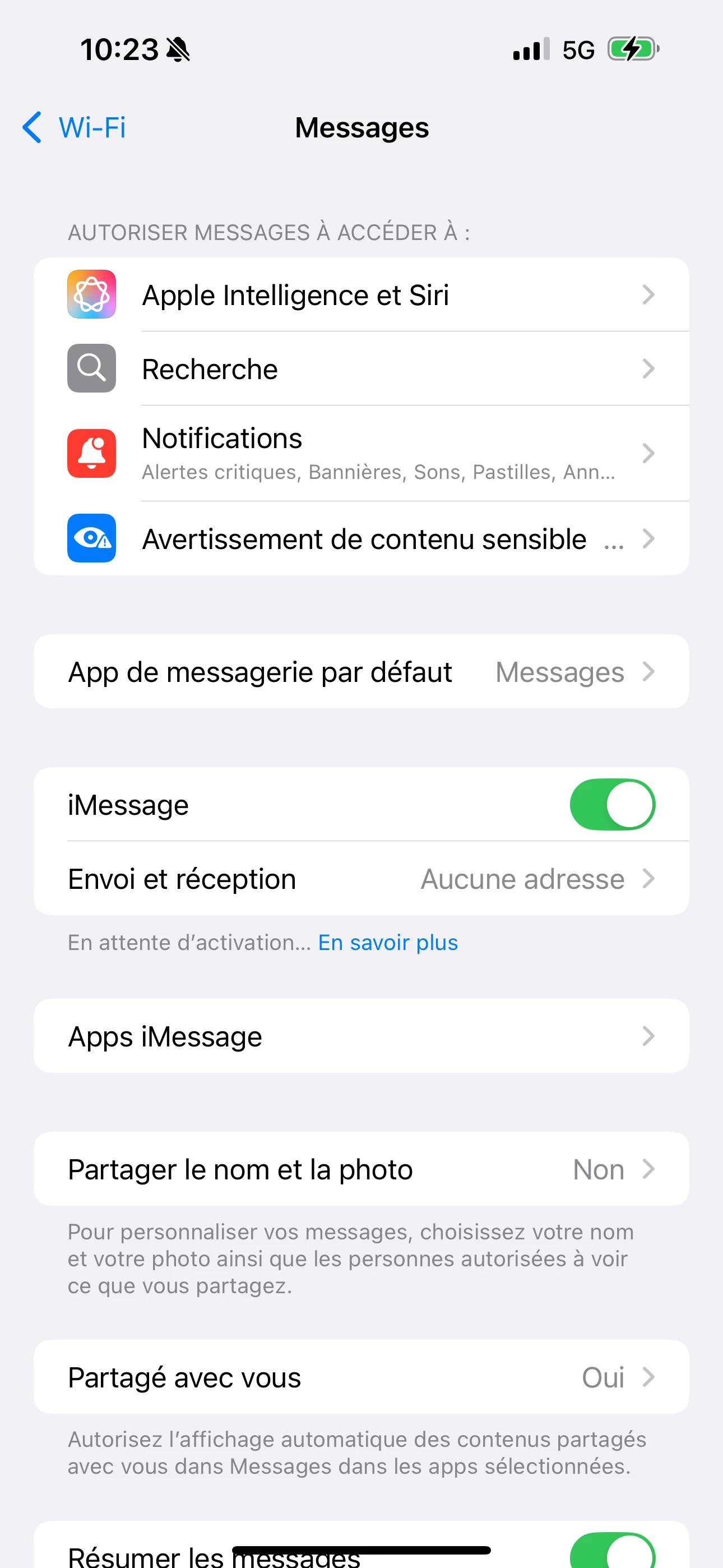 BOnjour, je n’arrive pas à activer iMessage ni FaceTime sur le numéro de téléphone de mon iPhone.