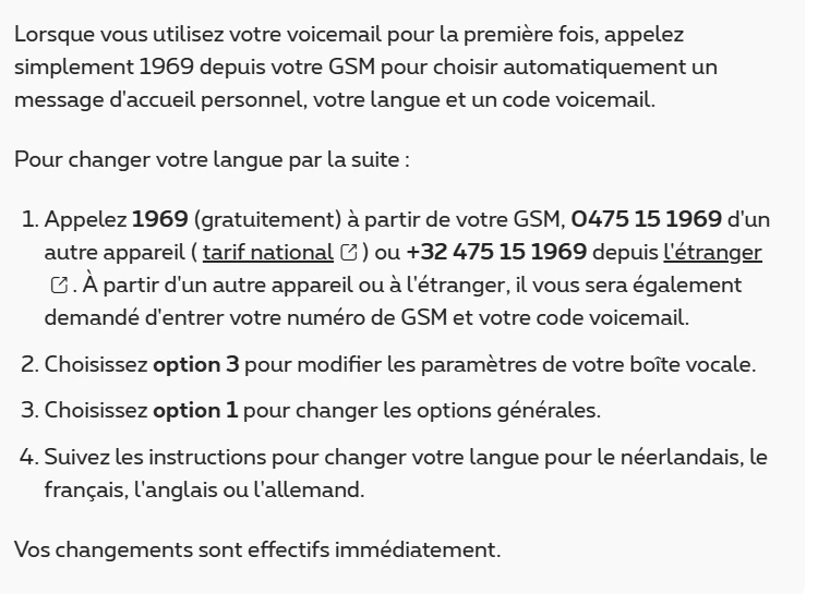 - Le SMS que je reçois qui me notifie que j’ai un ou plusieurs message(s) vocal(aux) est en néerlandais
