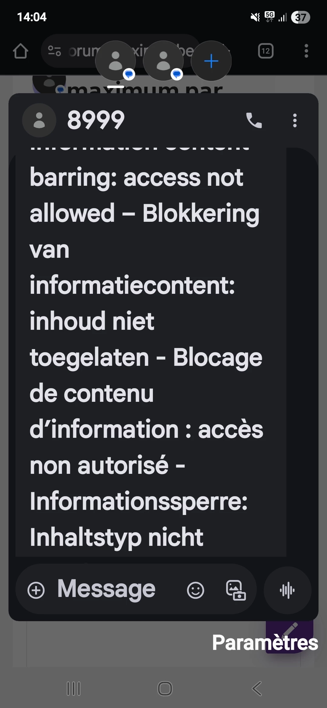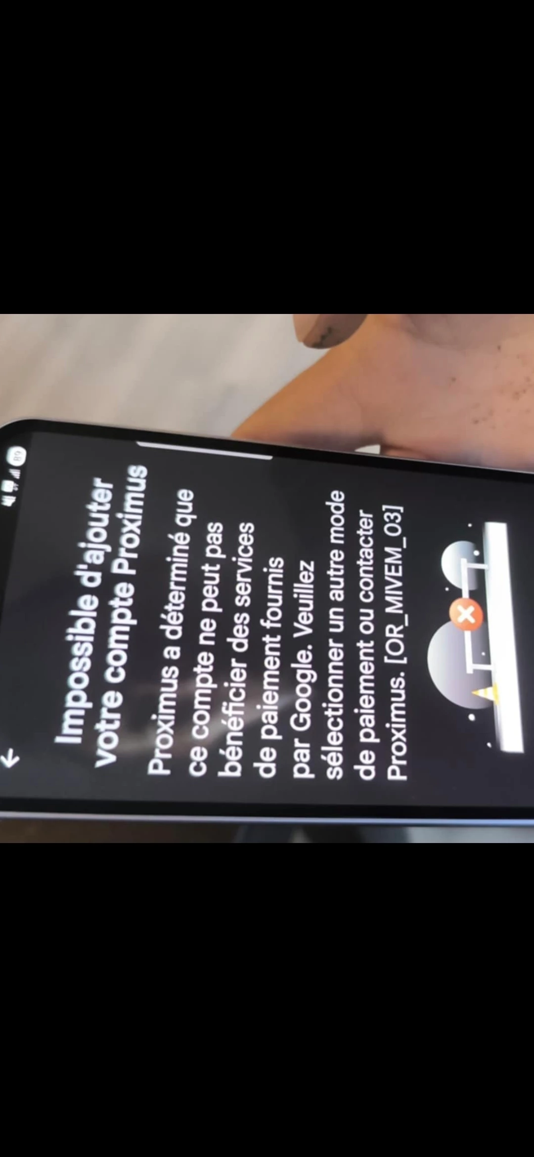 Mais quand j'ajoute la facturation Proximus à Google play cela me dit :