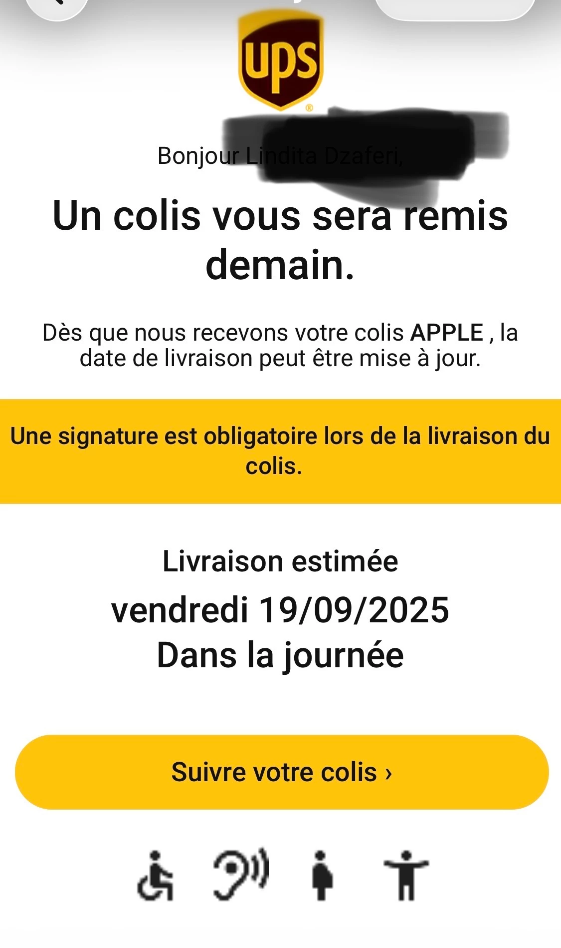 et je sais pas si quelqu’un d’autre a la même chose que moi j’avais reçus par UPS le 18-09 comme quoi j’allais être livrée le 19 et depuis plus rien