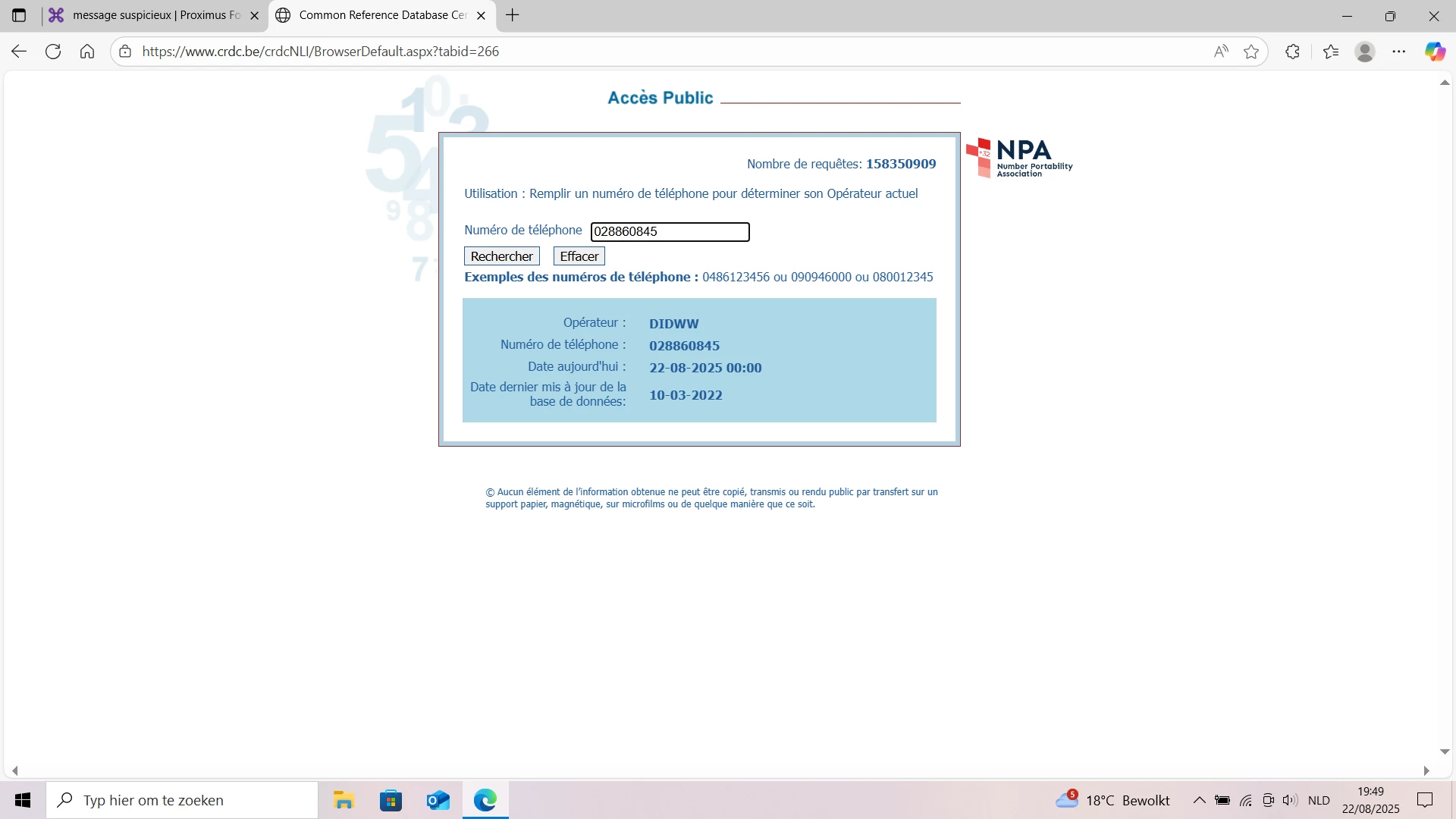Un prélèvement de 1099 EUR est en cours. Si vous n'etes pas à l'origine de cette opération, merci de nous contacter immédiatement au : 028860845.