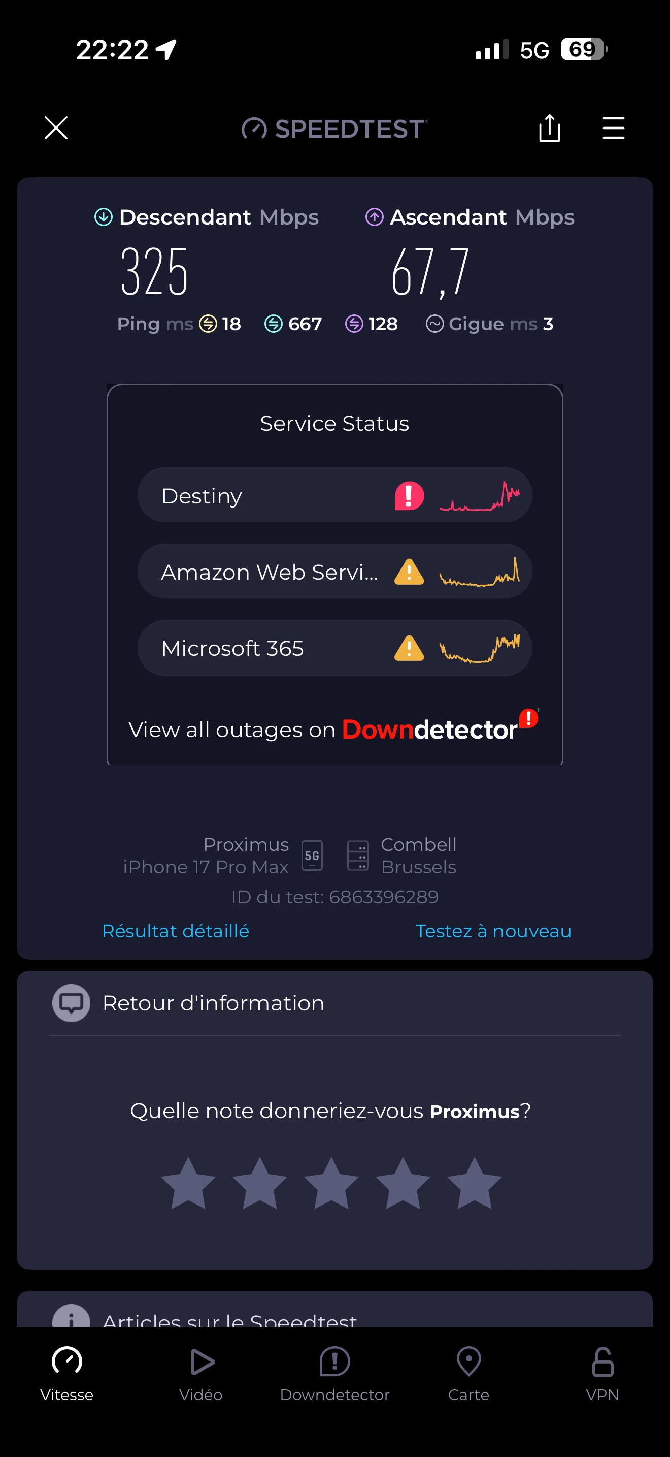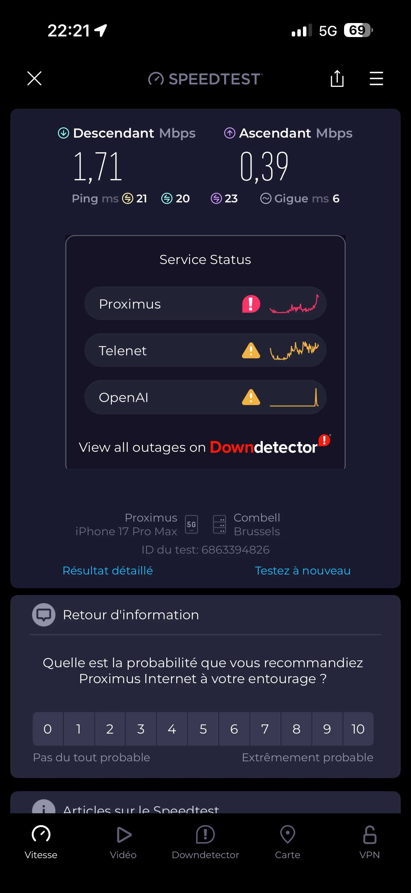 Depuis que j’ai mon iphone 17 max pro je rencontre des soucis de réseau 5G avec ma carte sim Proximus. Très souvent, l iPhone bascule sur le mode edgé et perd la 5G alors qu il y'a du réseau Proximus 5G disponible. Apple Assistance contacté, ils disent ne pas avoir de soucis de réseau 5G avec le 17 Max Pro et que cela doit venir de l'opérateur ou de la carte Sim. Or j’ai la même carte que j’avais avec l’iphone 14 Pro et aucun soucis rencontrés. Bref, ils renvoient la balle vers Proximus. Du coup, est ce que d'autres personnes ont expérimenté ce problème avec un 17 Pro et le réseau 5G ?